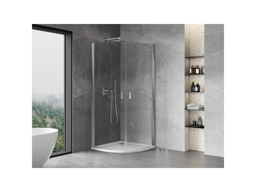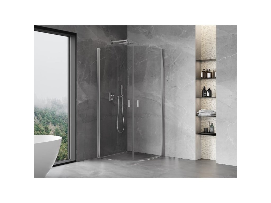Specifikace produktu: Rozměr: 80x80 cm Výška: 200 cm Poloměr zakřivení R55 Strana montáže: Univerzální Vchod: Dveře s výklopnými křídly Barva skla: Průhledná Povrchová úprava: Chrom Profil: Hliník Typ skla: Tvrzené Tloušťka skla: 6 mm Povrchová úprava pro snadné čištění Nastavitelná šířka Možnost instalace na sprchovou vaničku nebo dlaždice Mechanismus zvedání a spouštění dveří Magnetický proužek a elastomerové těsnění pro odtok vody Hliníkový práh těsnění dveříDoplňkové parametry