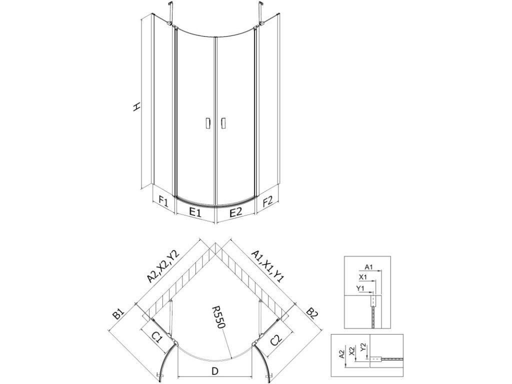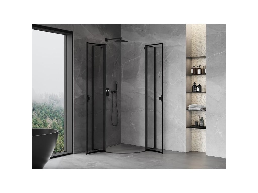 Specifikace produktu: Rozměr: 100x100 cm Výška: 200 cm Poloměr zakřivení R55 Strana montáže: Univerzální Vchod: Dveře s výklopnými křídly Barva skla: Černý rám Povrchová úprava: Černá Profil: Hliník Konzola: Nerezová ocel Typ skla: Tvrzené Tloušťka skla: 6 mm Povrchová úprava pro snadné čištění Nastavitelná šířka Možnost instalace na sprchovou vaničku nebo dlaždice Mechanismus zvedání a spouštění dveří Magnetický proužek a elastomerové těsnění pro odtok vody Hliníkový práh těsnění dveříDoplňkové parametry