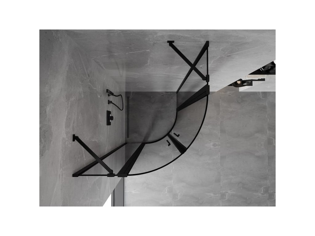 MEXEN - MIST dveřní část čtvrtkruhová (2d2s) 100x100x200 cm 6mm černá, okraj 8A32-100-100-70-70