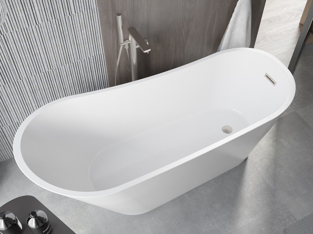 Mexen Alta je unikátní volně stojící vana o rozměrech 170 x 75 cm, která spojuje eleganci s moderností. Vyrobeno ze sanitárního akrylátu, zaručuje trvanlivost a odolnost proti zašpinění. Bílý povrch v kombinaci s broušeným niklem mu dodává klasický vzhled. Vana má navíc přepadový otvor, který zvyšuje její funkčnost. Jeho oválný tvar a volně stojící instalace z něj činí ideální volbu do luxusních koupelen.