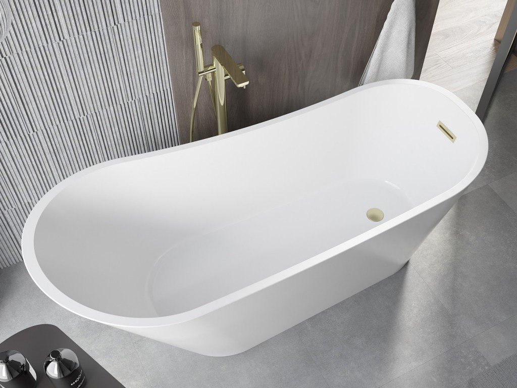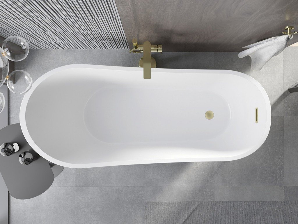 MEXEN/S - Alta volně stojící vana 170 x 75, bílá, sifon a přepad zlatá kartáčovaná 52141707500-55