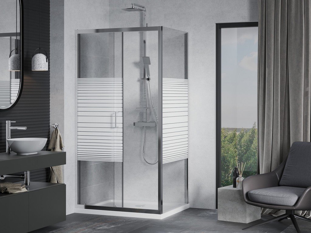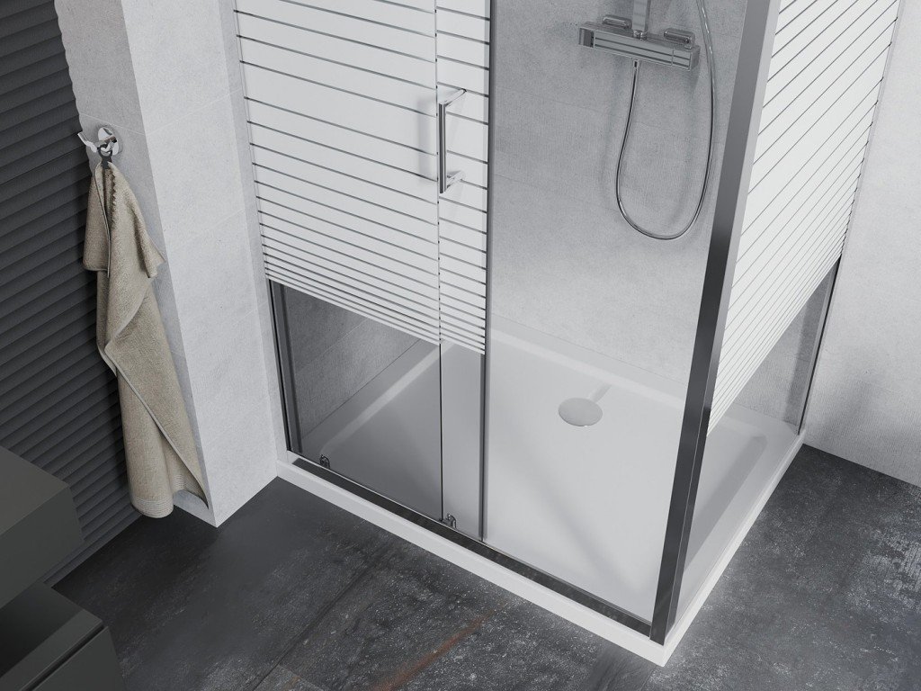 MEXEN/S - Apia Sprchový kout 140x70, transparent/dekor, chrom + vanička se sifonem 840-140-070-01-20-4010