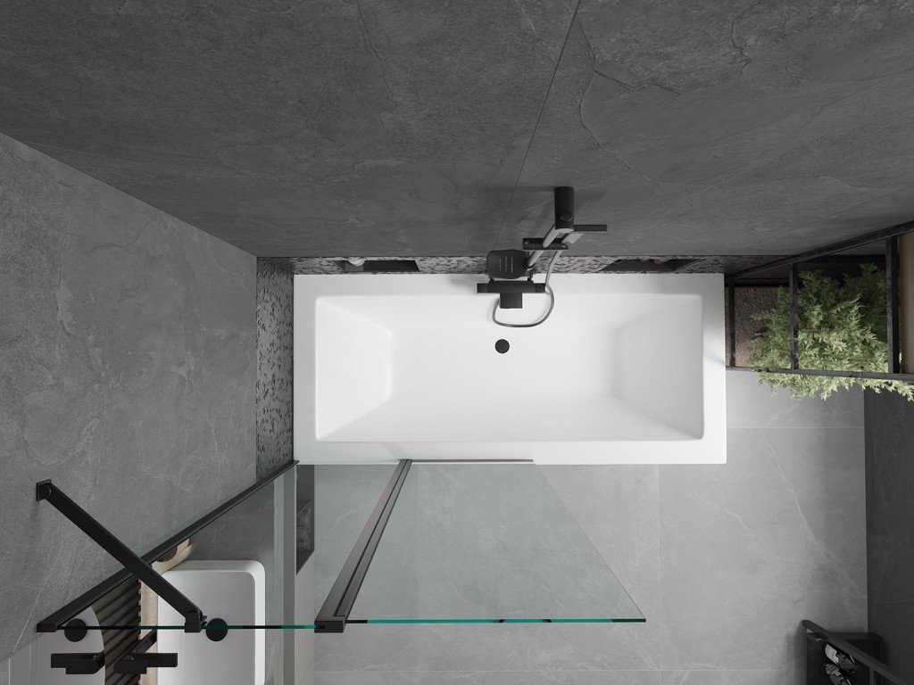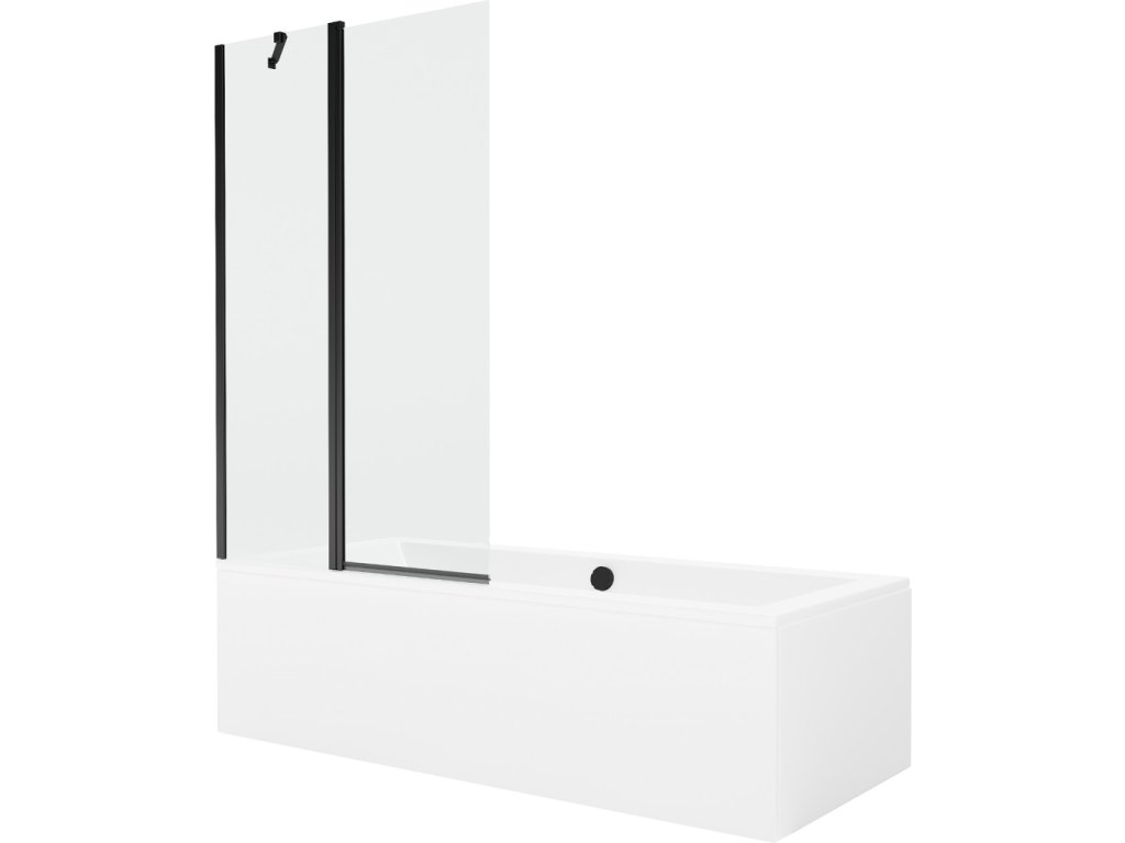 MEXEN/S - Cube obdélníková vana 170 x 80 cm s panelem + vanová zástěna 100, transparent, černá 550517080X9410117000