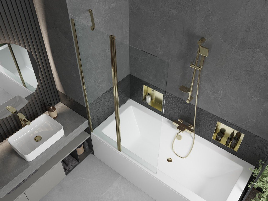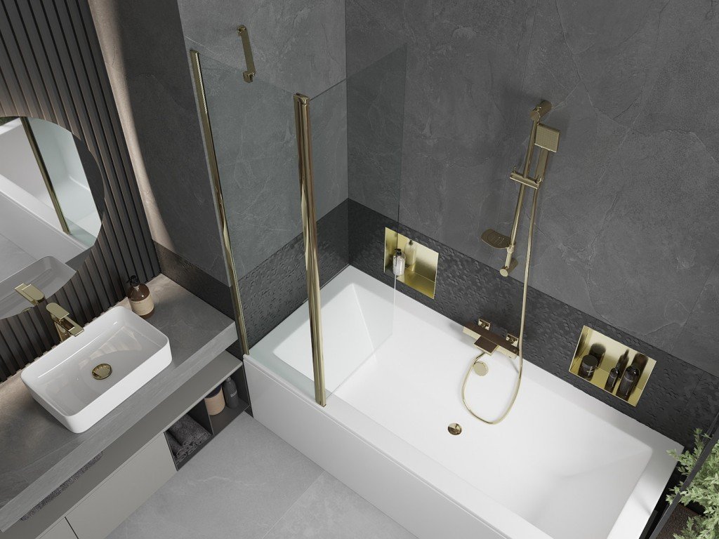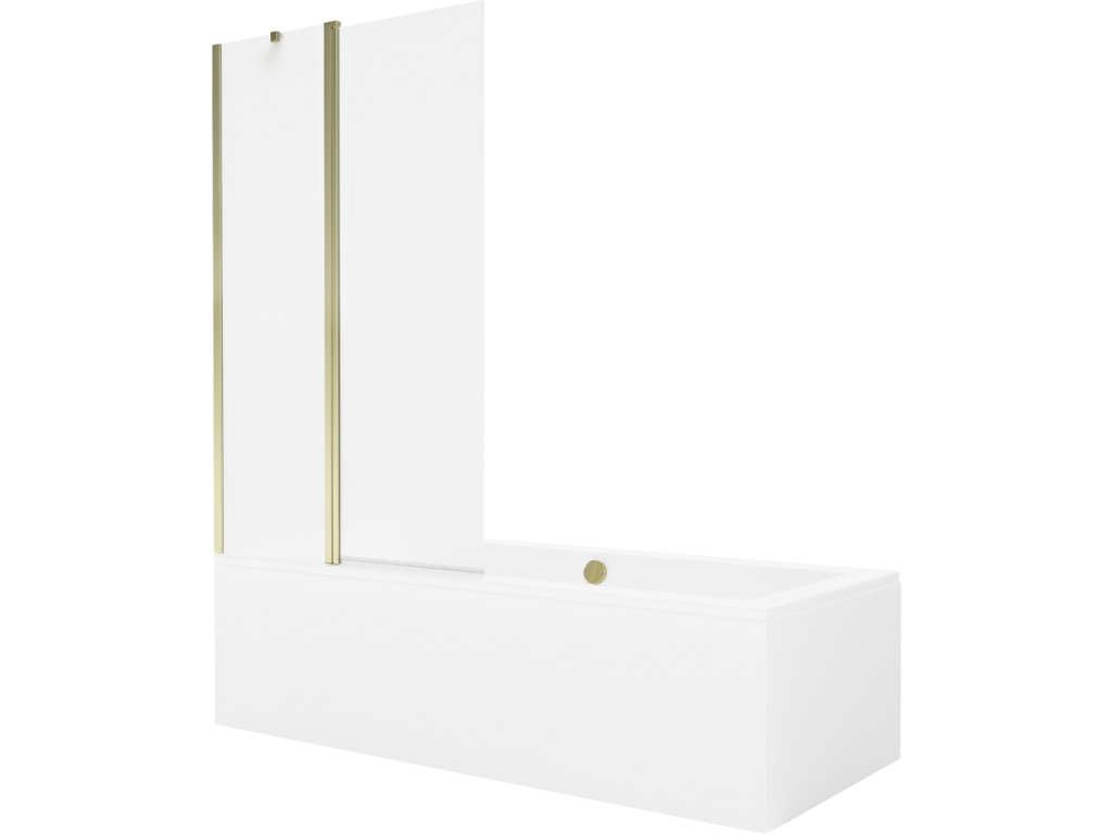 MEXEN/S - Cube obdélníková vana 170 x 80 cm s panelem + vanová zástěna 100, transparent, zlatá 550517080X9410115000
