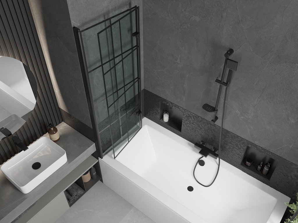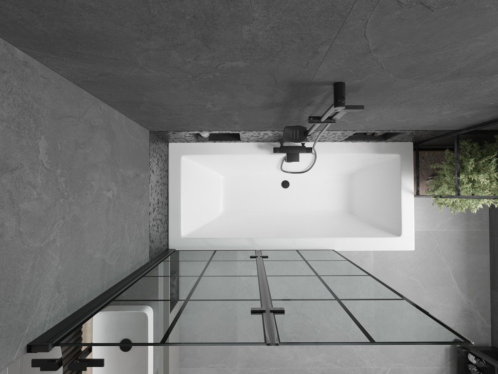 MEXEN/S - Cube obdélníková vana 170 x 80 cm s panelem + vanová zástěna 120, černá vzor 550517080X9212027077