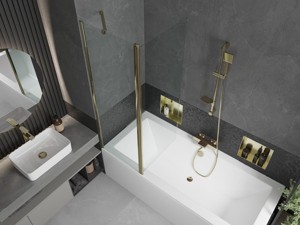 MEXEN/S - Cube obdélníková vana 170 x 80 cm s panelem + vanová zástěna 120, transparent, zlatá 550517080X9412115000