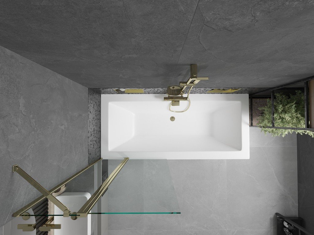 MEXEN/S - Cube obdélníková vana 170 x 80 cm s panelem + vanová zástěna 80, transparent, zlatá 550517080X9408115000