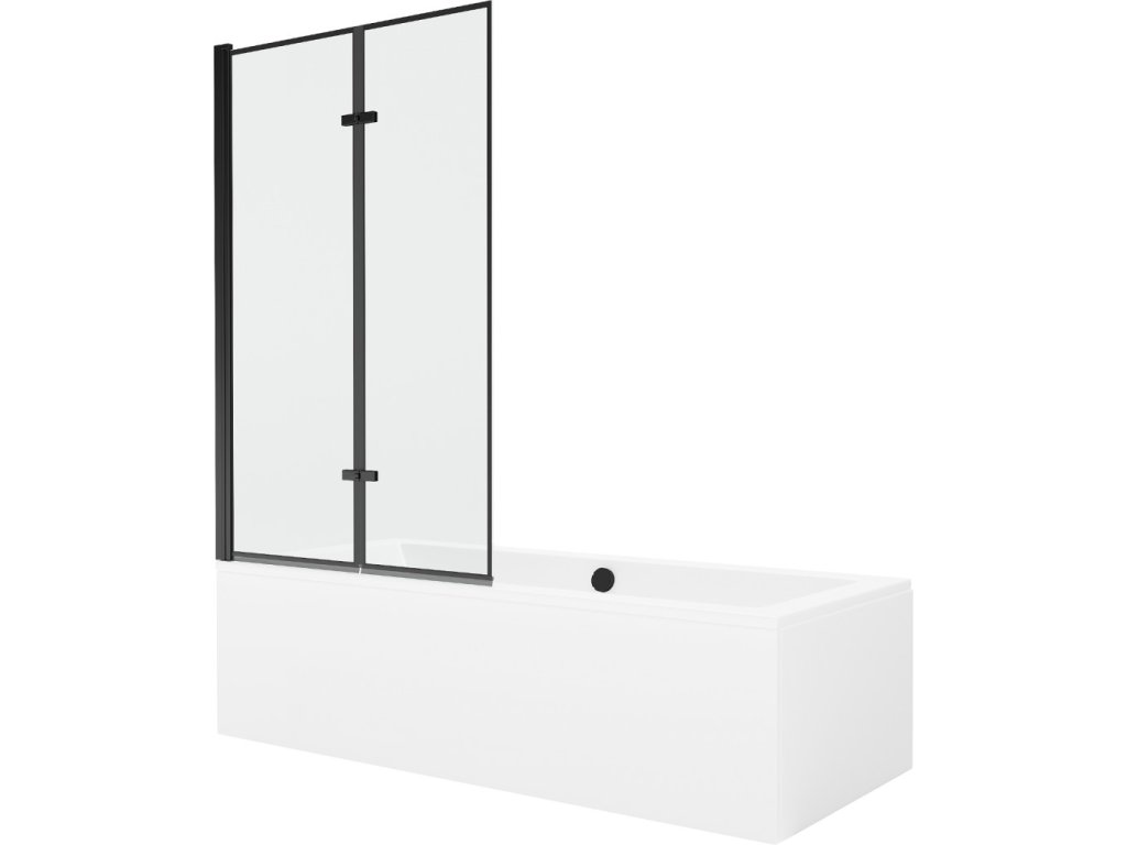 MEXEN/S - Cube obdélníková vana 180 x 80 cm s panelem + vanová zástěna 100, černá vzor 550518080X92100027070