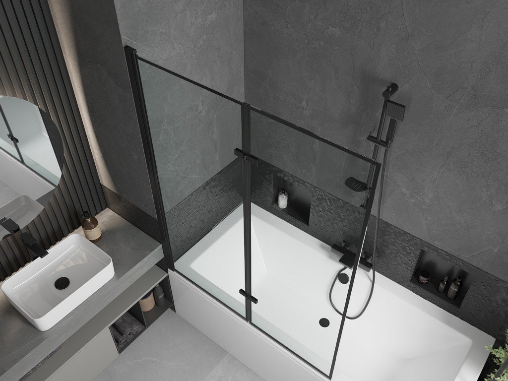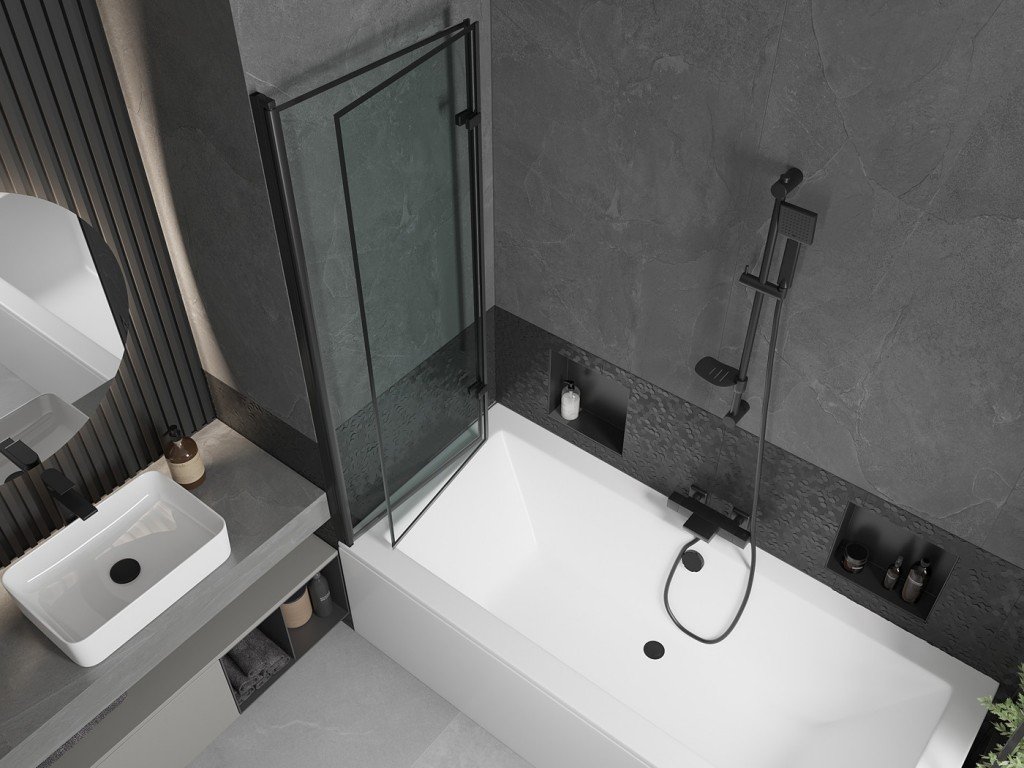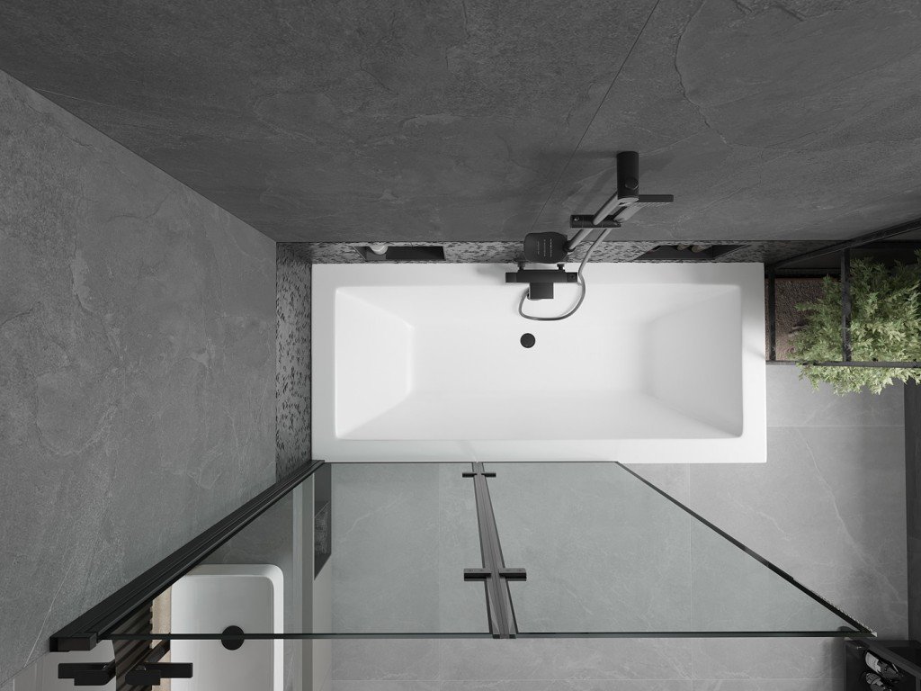 MEXEN/S - Cube obdélníková vana 180 x 80 cm s panelem + vanová zástěna 120, černá vzor 550518080X92120027070