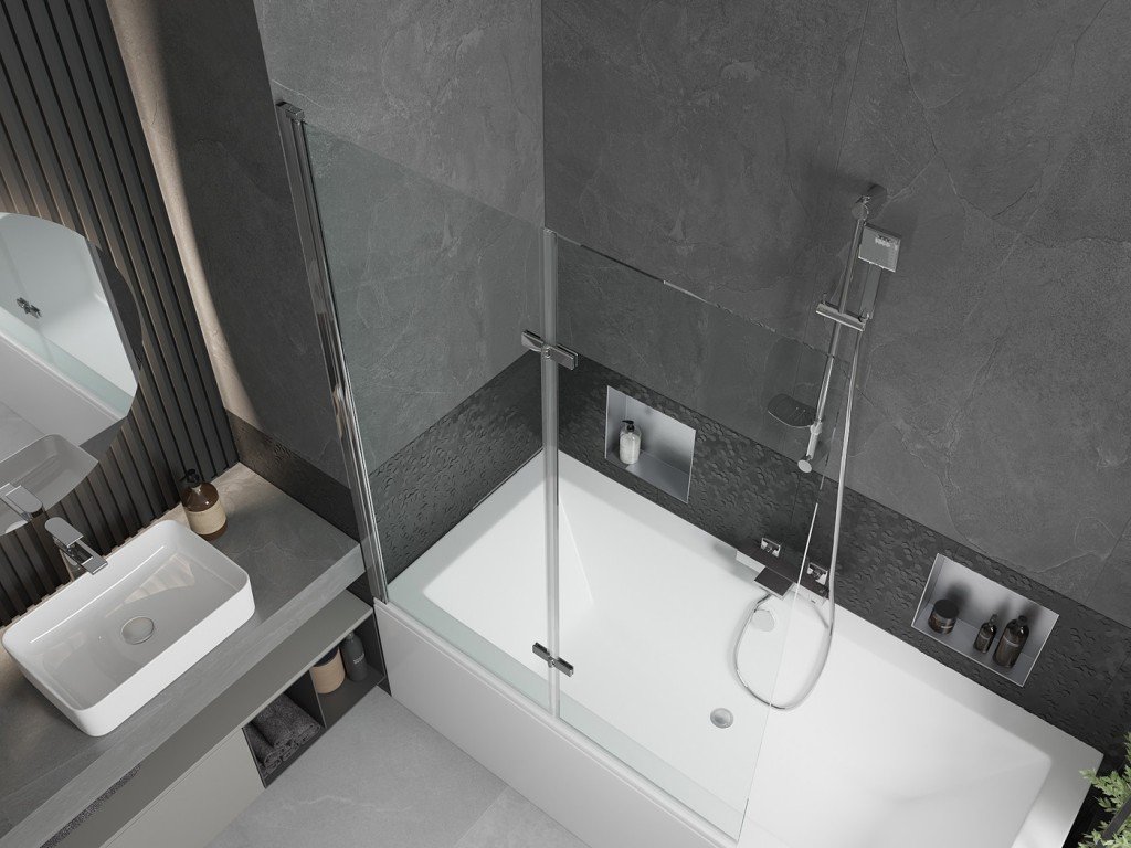 MEXEN/S - Cube obdélníková vana 180 x 80 cm s panelem + vanová zástěna 120, transparent, chrom 550518080X9212020100