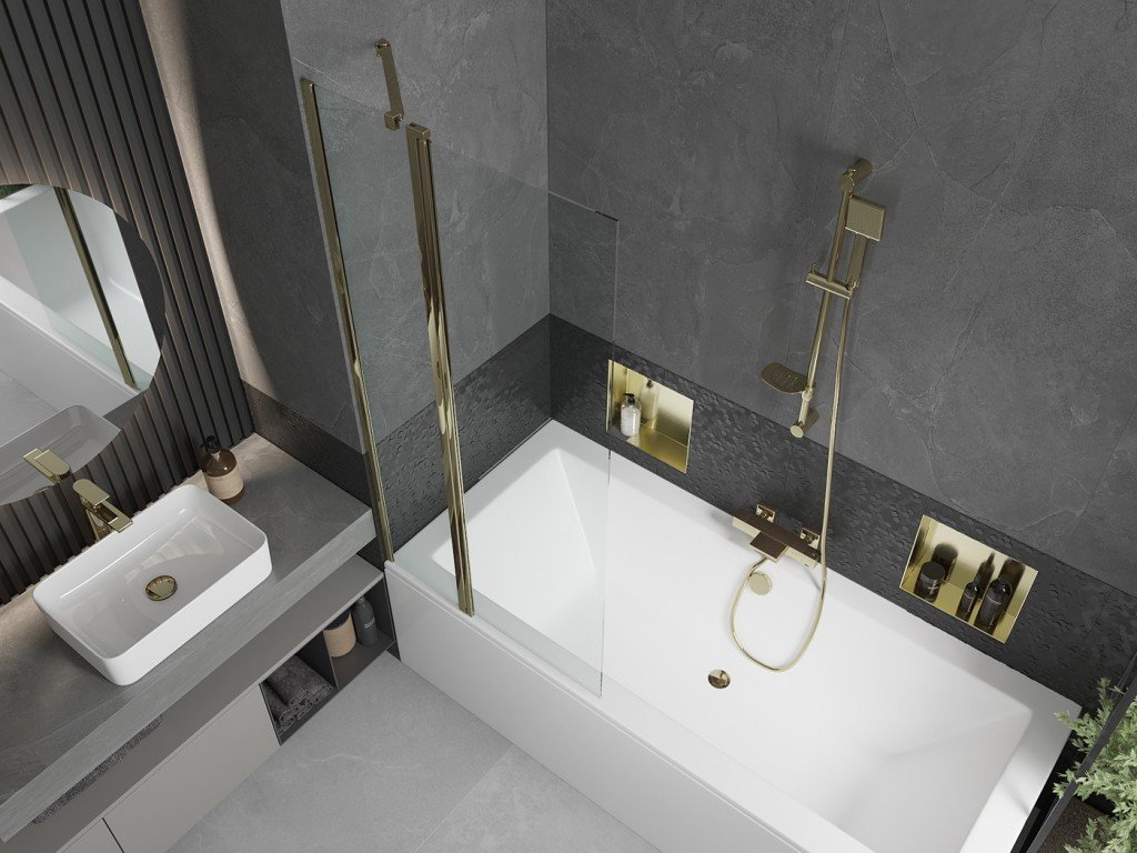 MEXEN/S - Cube obdélníková vana 180 x 80 cm s panelem + vanová zástěna 80, transparent, złot 550518080X9408115000