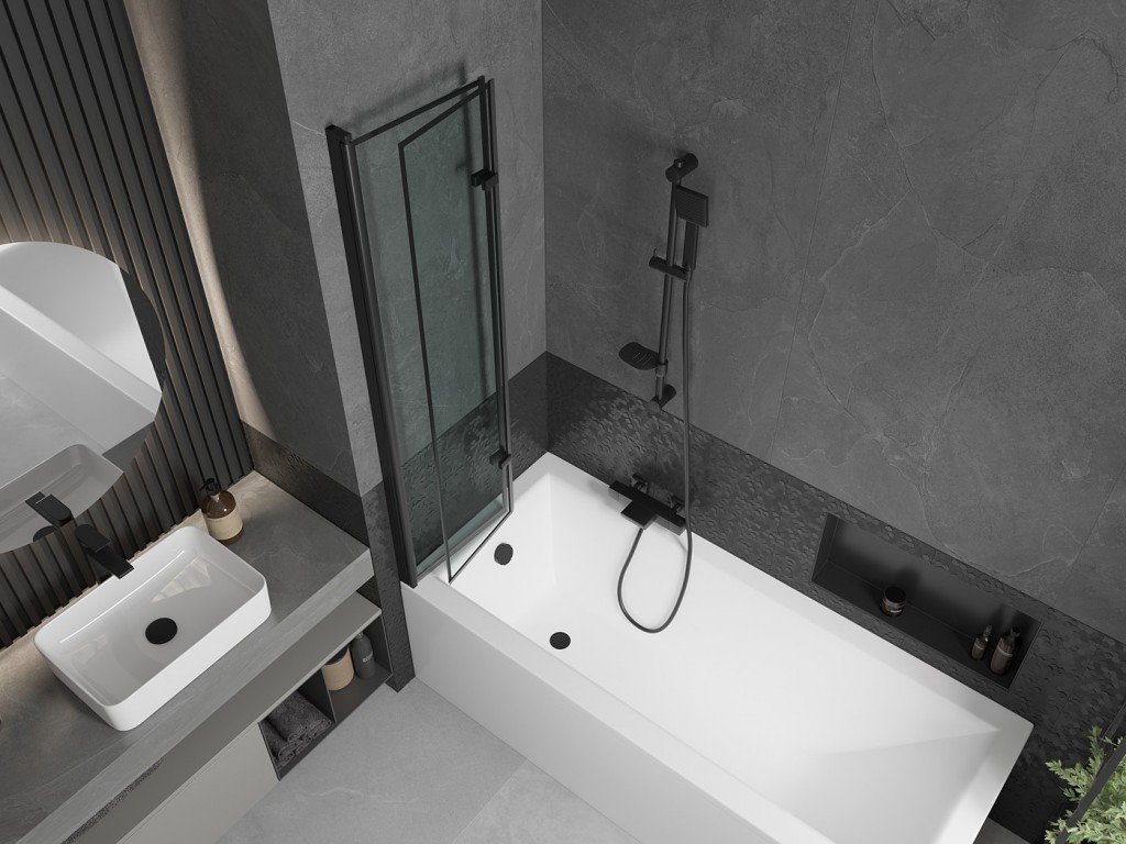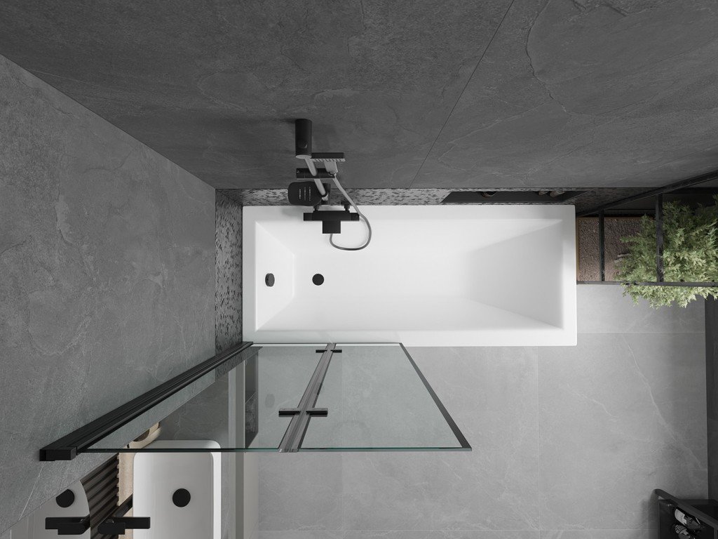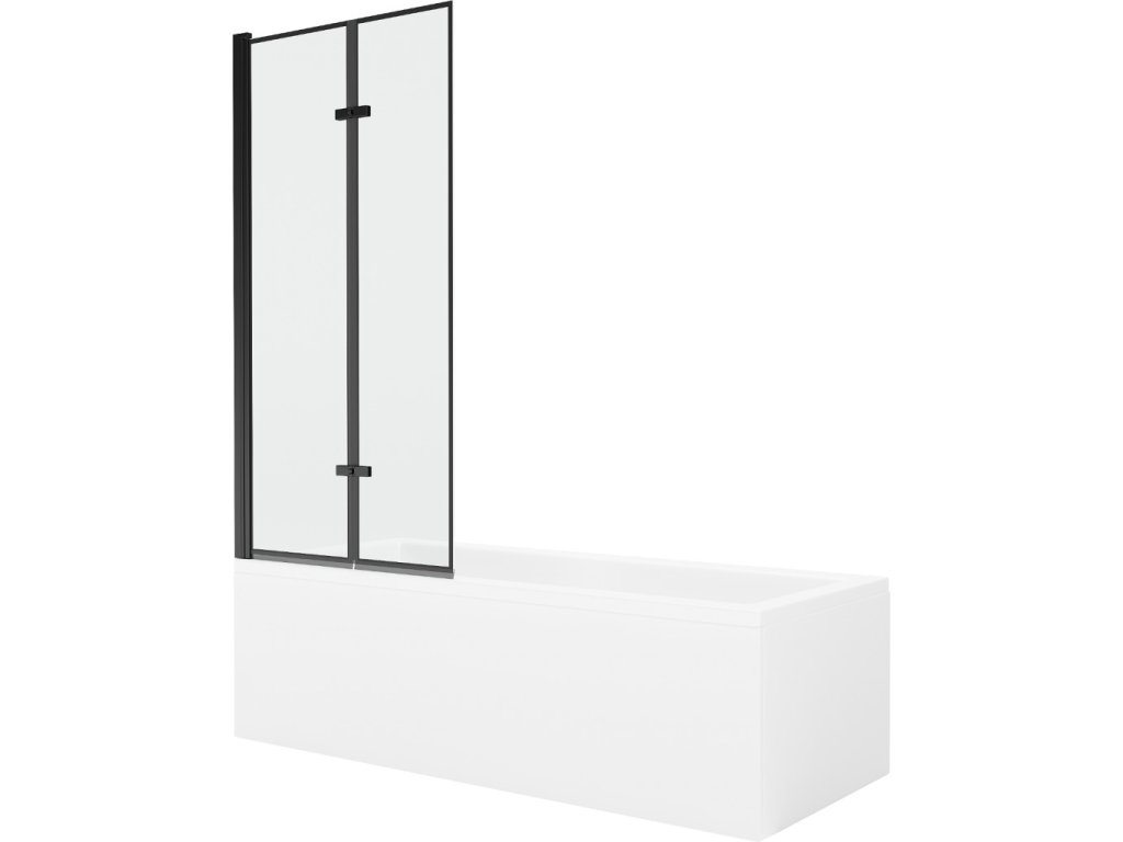 MEXEN/S - Cubik obdélníková vana 160 x 70 cm s panelem + vanová zástěna 80, černá vzor 550316070X9208027070