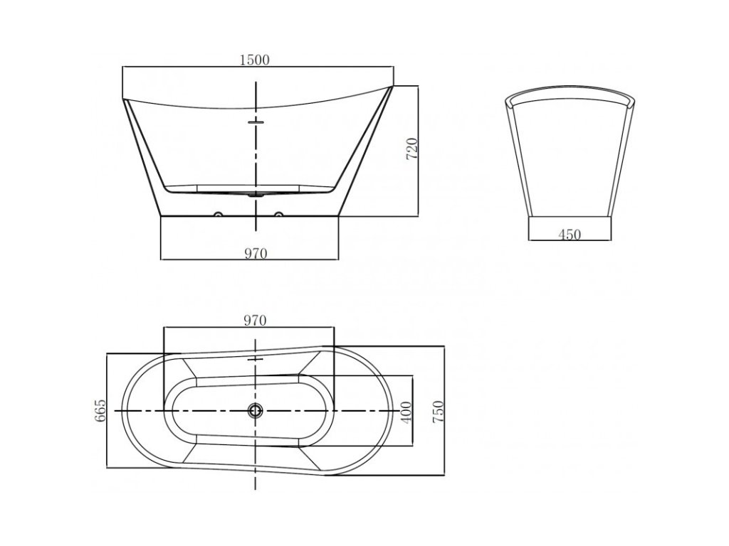 MEXEN/S - Dora volně stojící vana 150 x 75, bílá/černá, sifon a přepad zlatá kartáčovaný 52071507575-55