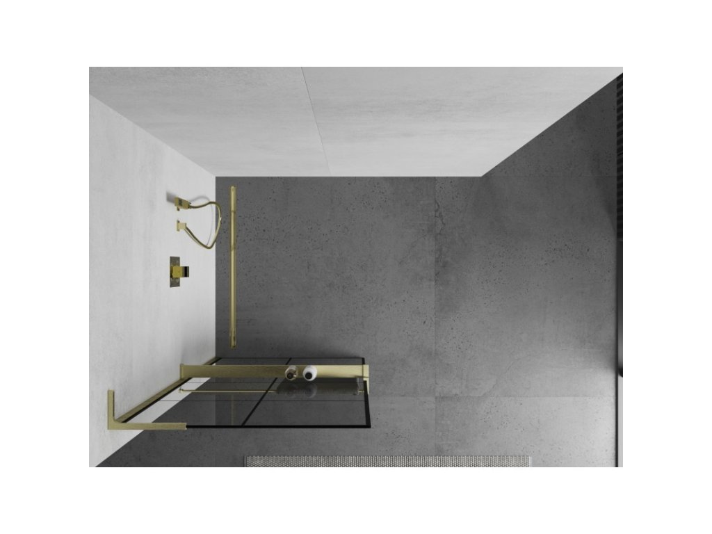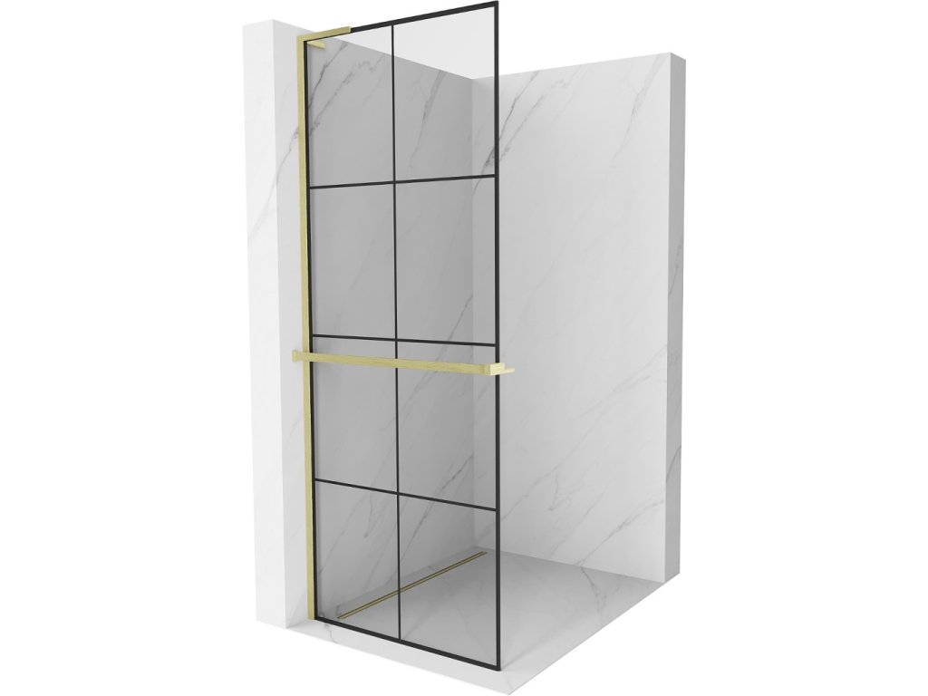 MEXEN/S - Kioto+ L Sprchová zástěna WALK-IN s poličkou a držákem ručníků 80 x 200, černý vzor, zlatá kartáčovaná 800-080-123-55-77