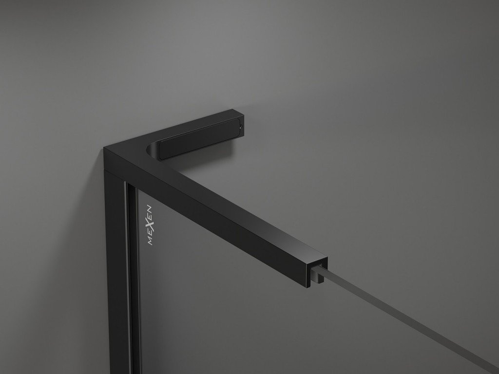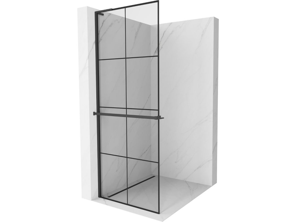 MEXEN/S - Kioto+ L Sprchová zástěna WALK-IN s poličkou a držákem ručníků 90 x 200, černý vzor, černá 800-090-123-70-77