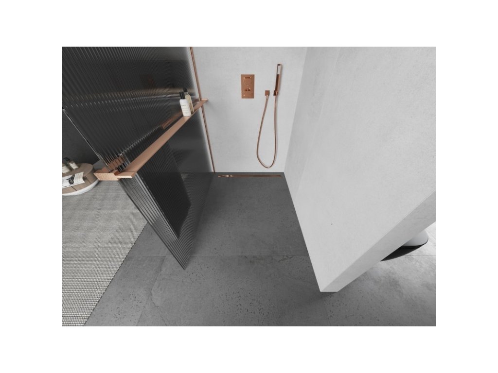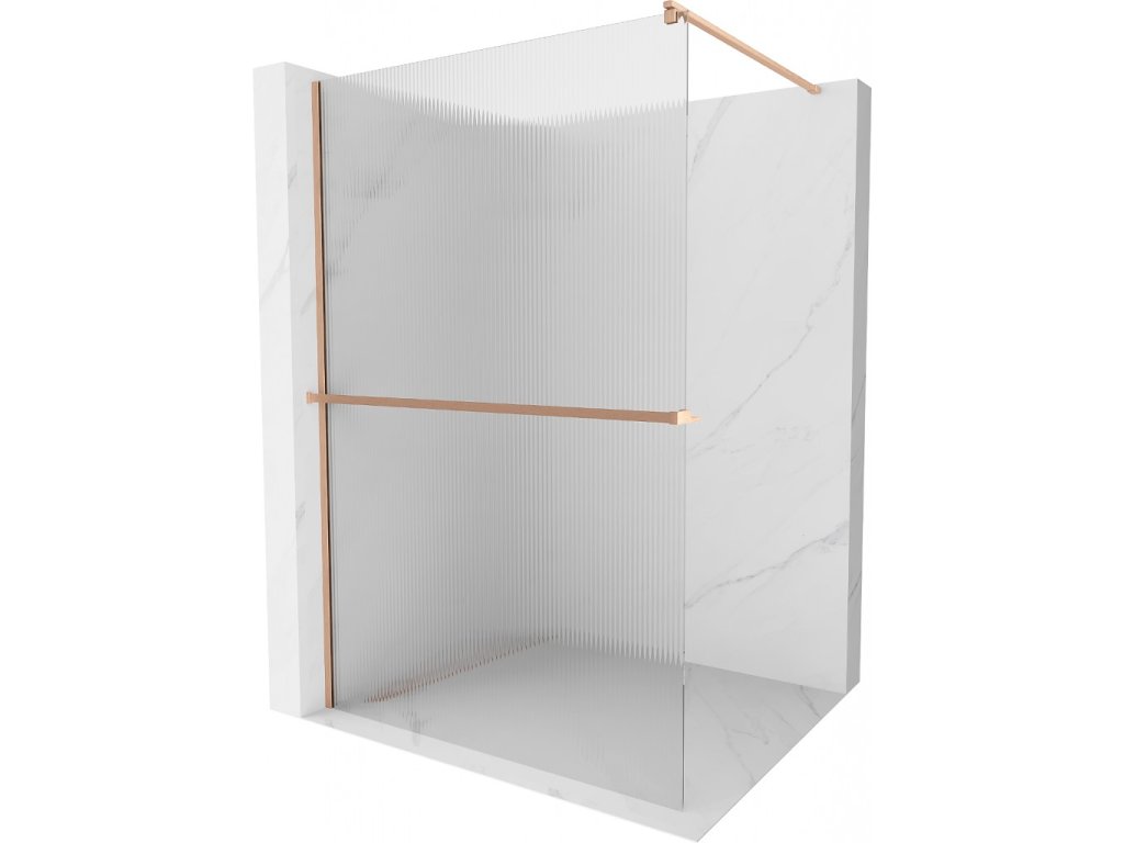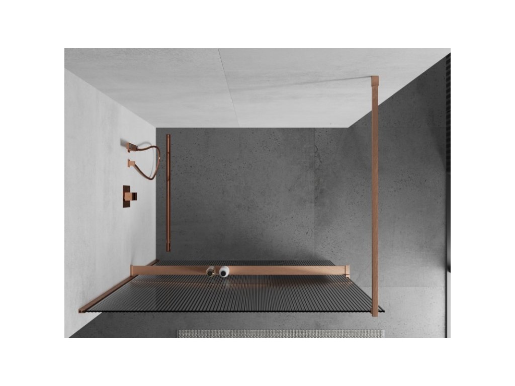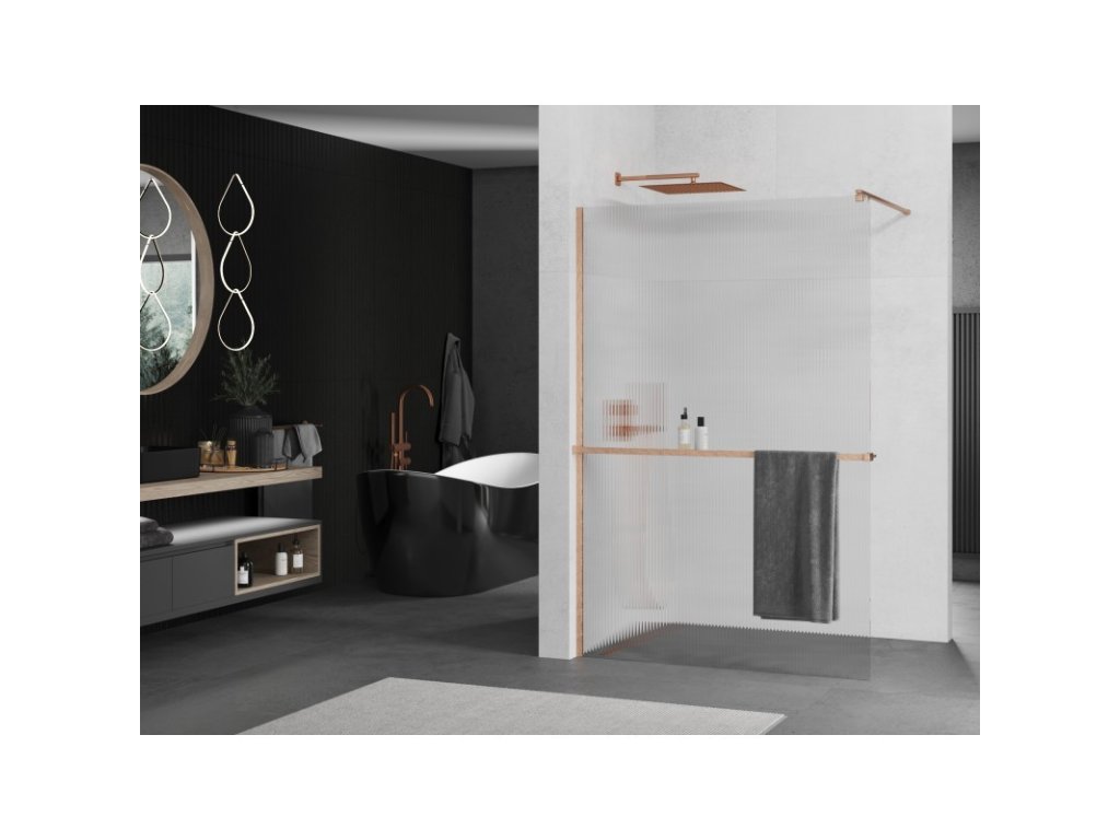 MEXEN/S - Kioto+ Sprchová zástěna WALK-IN s poličkou a držákem ručníků 120 x 200, proužky, měď kartáčovaná 800-120-121-65-09