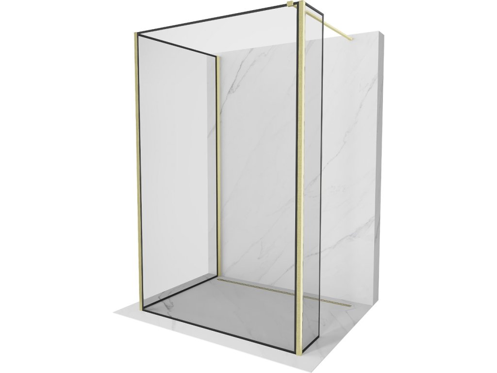MEXEN/S - Kioto Sprchová zástěna WALK-IN 100 x 100 x 40, černý vzor, zlatá kartáčovaná 800-100-100-221-55-70-040