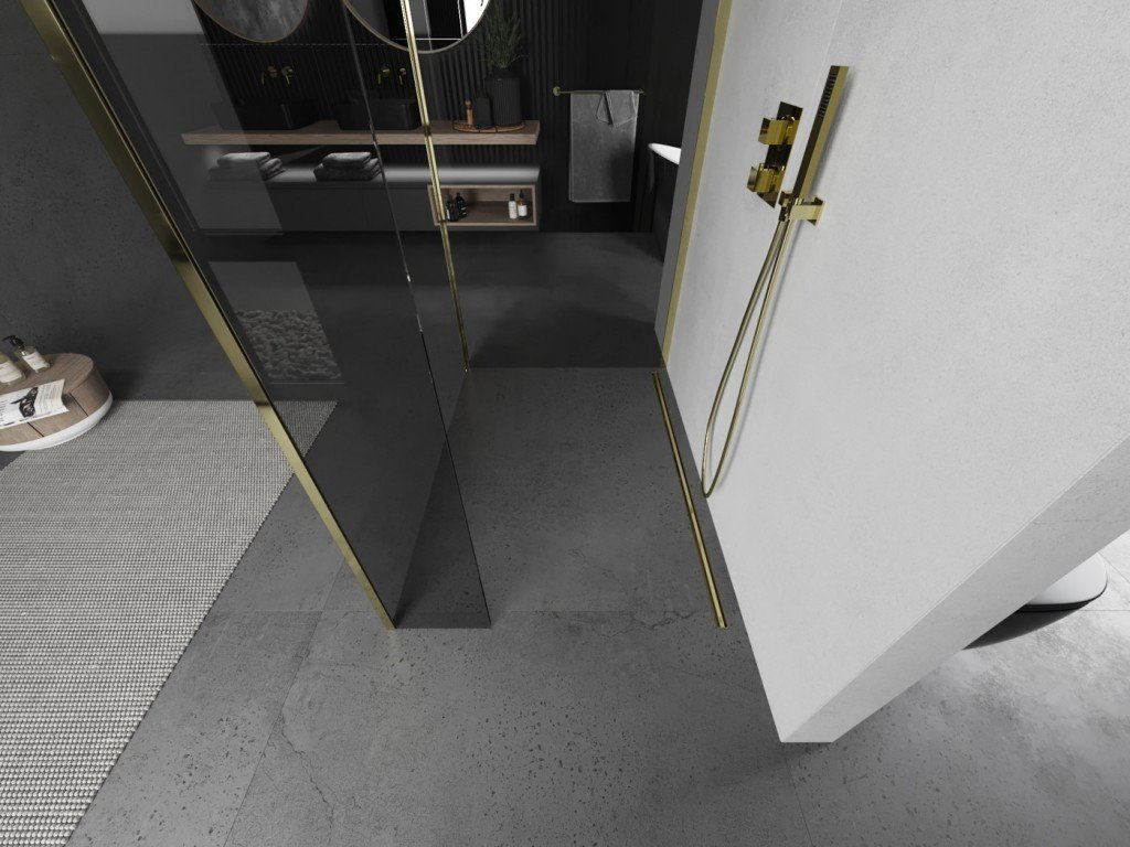 MEXEN/S - Kioto Sprchová zástěna WALK-IN 100 x 70 x 40, transparent, zlatá 800-100-070-221-50-00-040