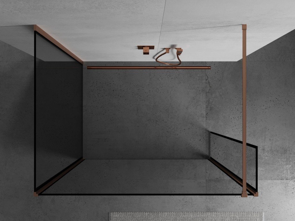 MEXEN/S - Kioto Sprchová zástěna WALK-IN 100 x 80 x 30, černý vzor, měď kartáčovaná 800-100-080-221-65-70-030