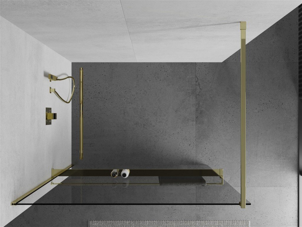 MEXEN/S - KIOTO Sprchová zástěna WALK-IN s poličkou a držákem ručníků 100 x 200, transparent 8 mm, zlatá 800-100-121-50-00