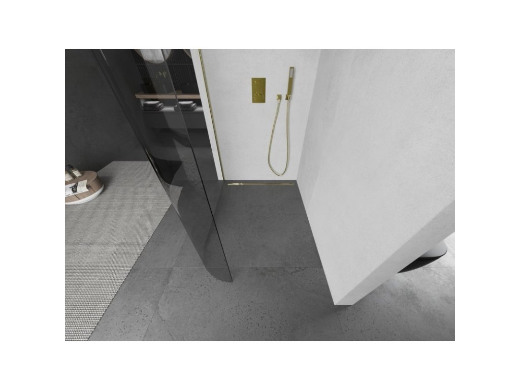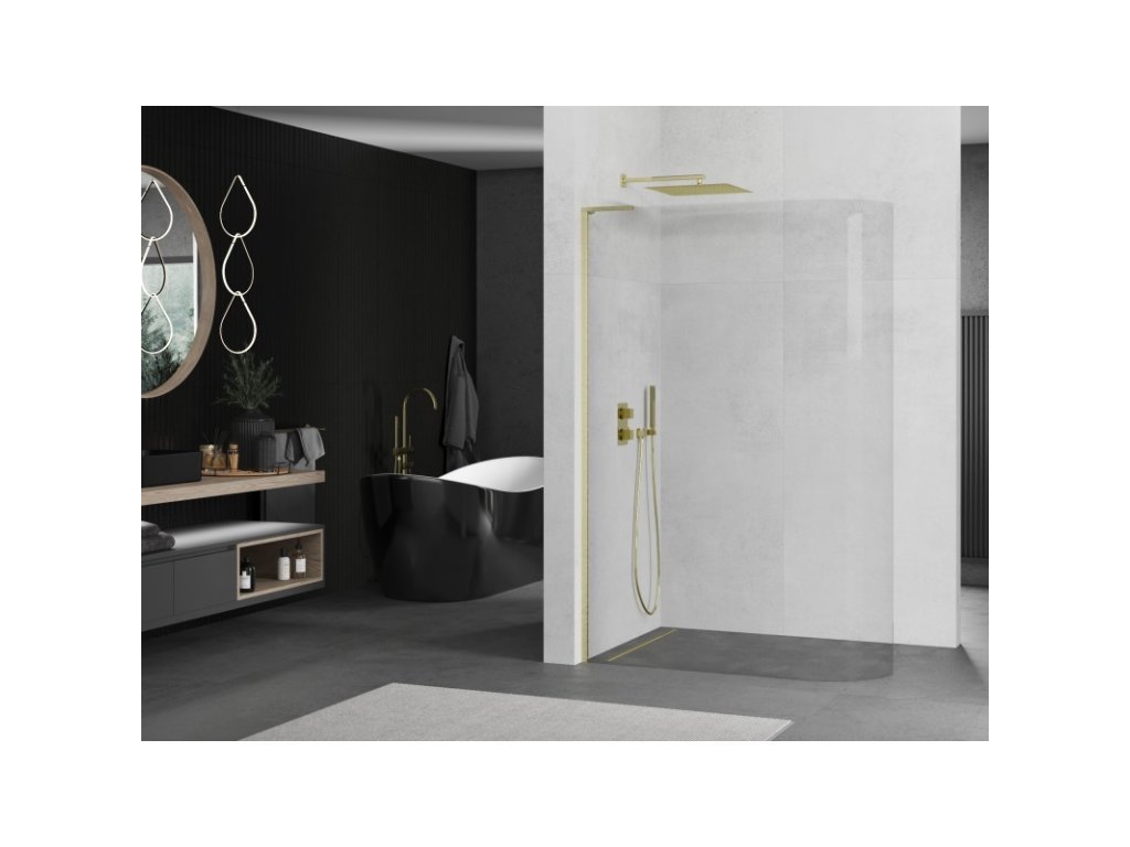 MEXEN/S - KiotoL Sprchová zástěna WALK-IN Walk-in 90 x 200, transparent, zlatá kartáčovaná 800-090-103-55-06