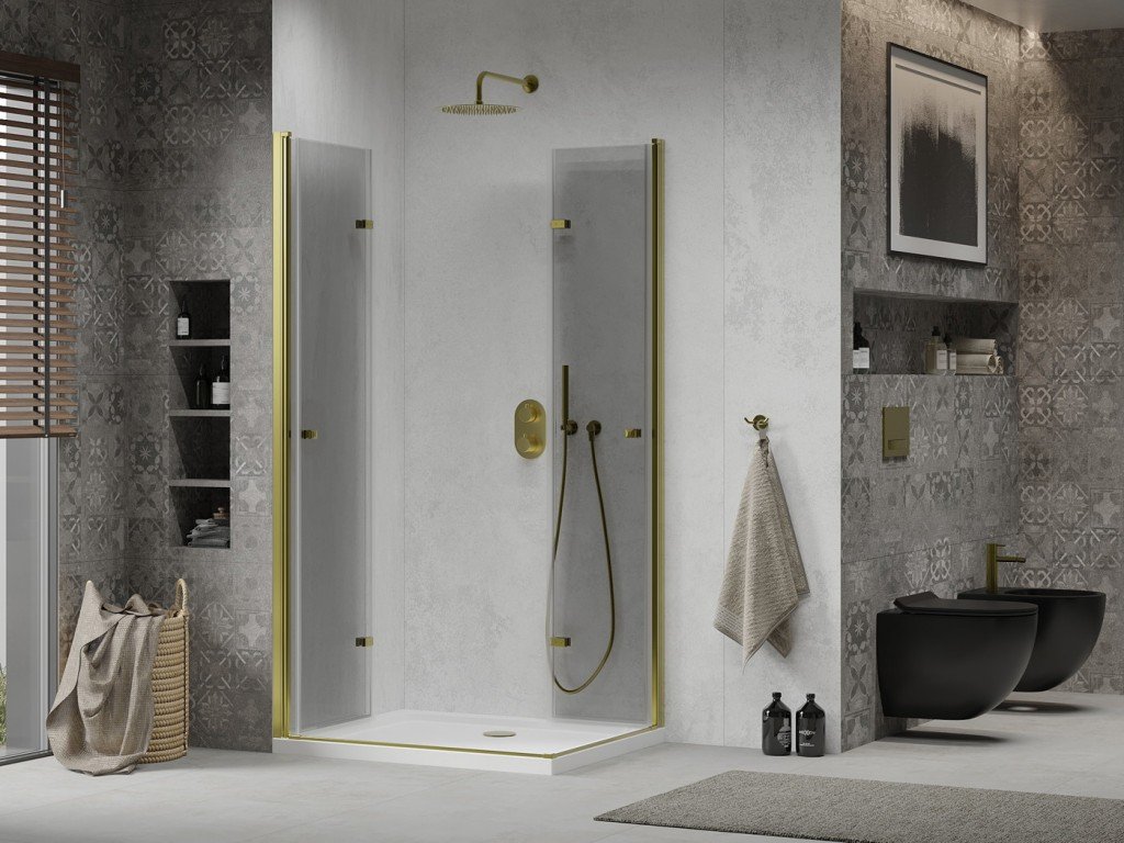 MEXEN/S - Lima Duo sprchový kout 80x70, transparent, zlatá +vanička se sifonem 856-080-070-50-02-4010G