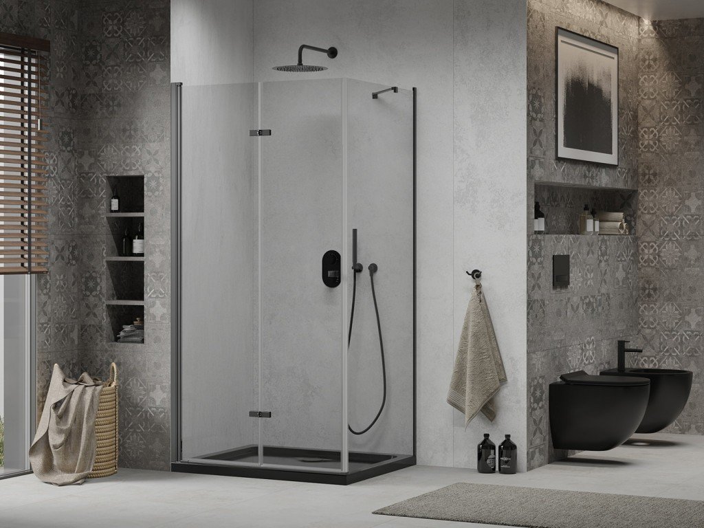 MEXEN/S - Lima sprchový kout zalamovací dveře 100 x 80, transparent, černý + Flat černá vanička se sifonem 856-100-080-70-00-4070B