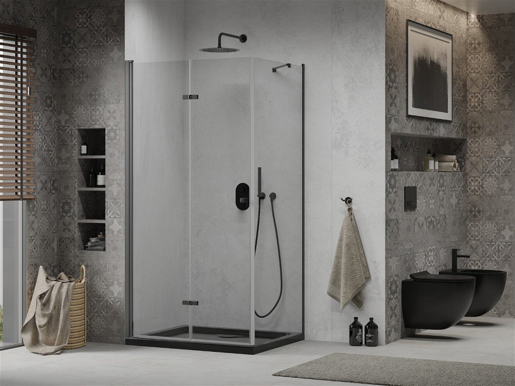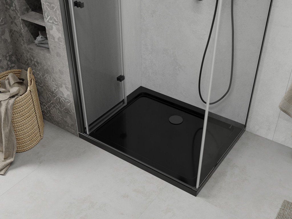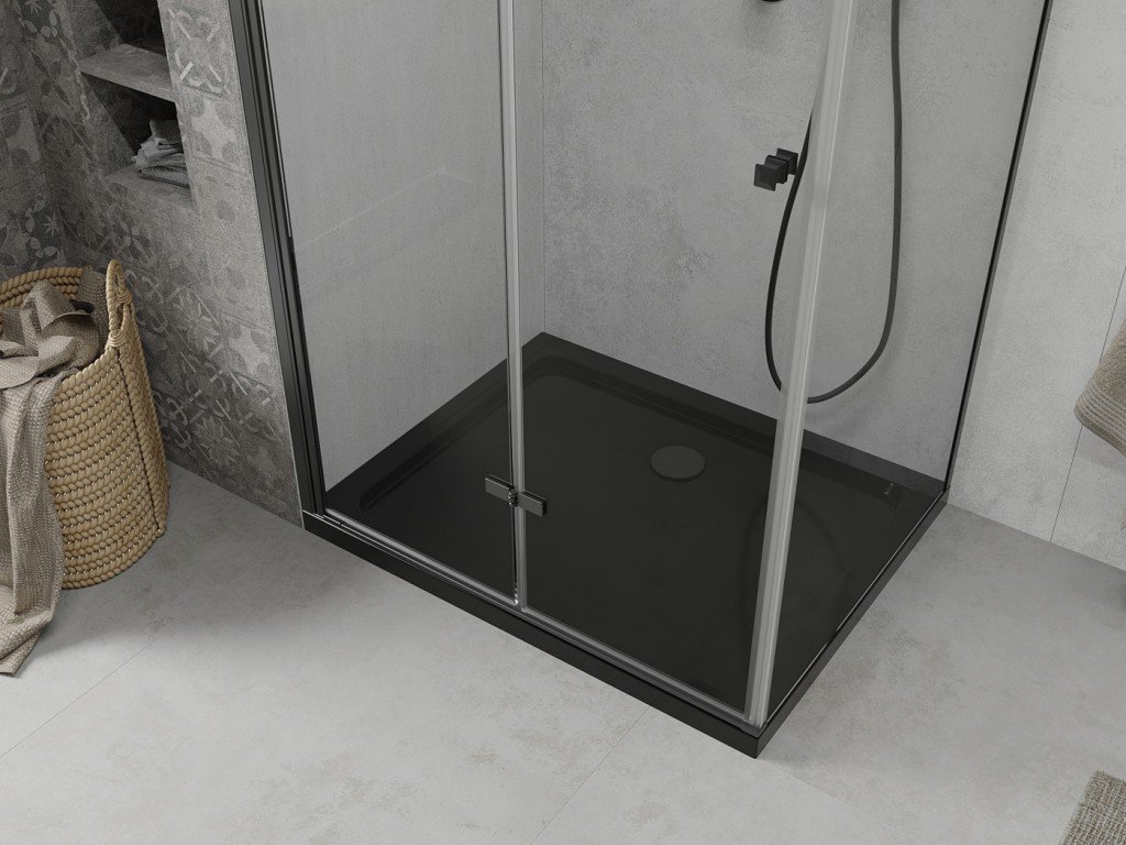 MEXEN/S - Lima sprchový kout zalamovací dveře 80 x 100, transparent, černý + Flat černá vanička se sifonem 856-080-100-70-00-4070B