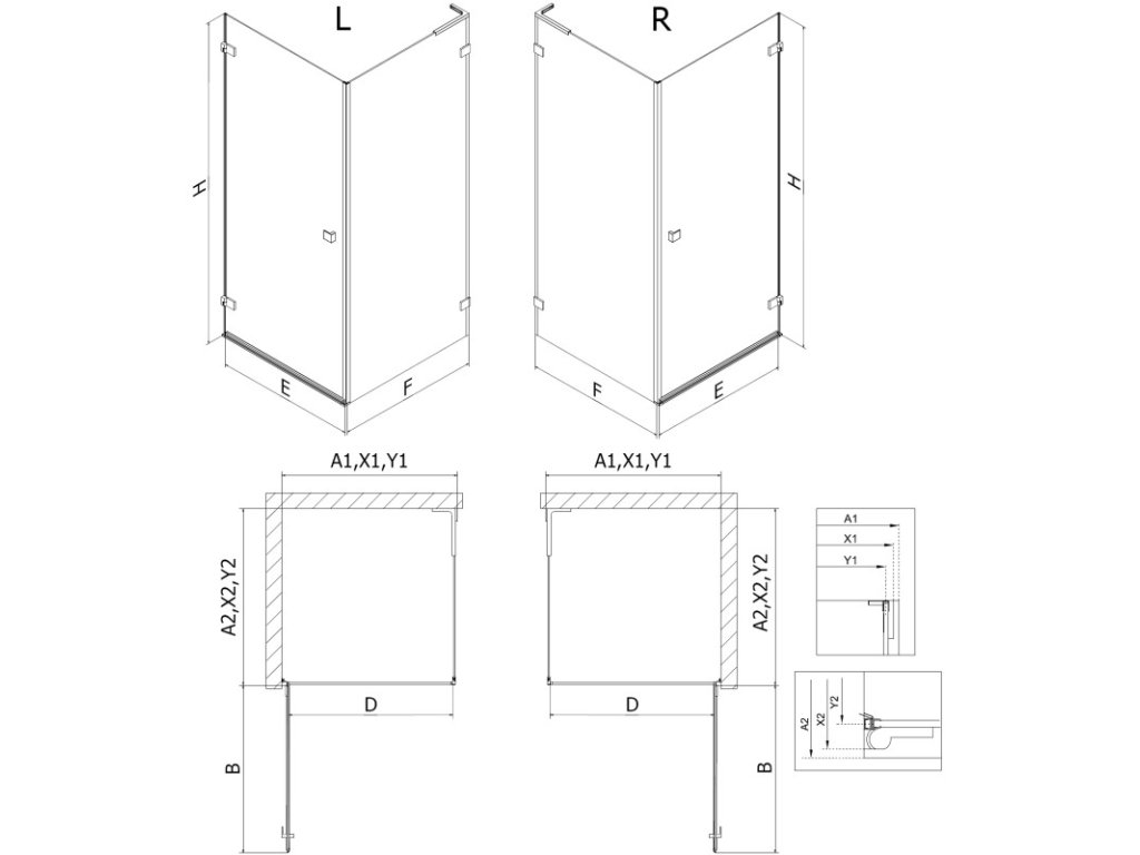 Specifikace produktu:Rozměr: 85x70 cm (pravé dveře 85 cm, stěna 70 cm)