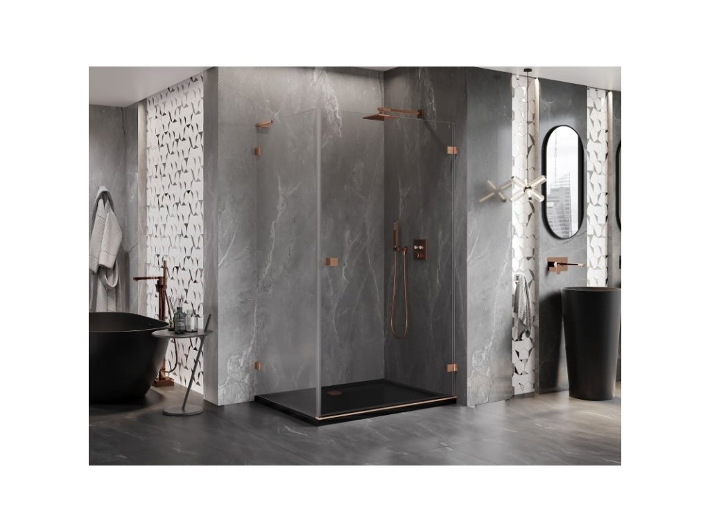 MEXEN/S - Lunar-B L sprchový kout dveře křídlové pravá 90 x 80, transparent, měď kartáčovaná 832L-090-080-65-00-P
