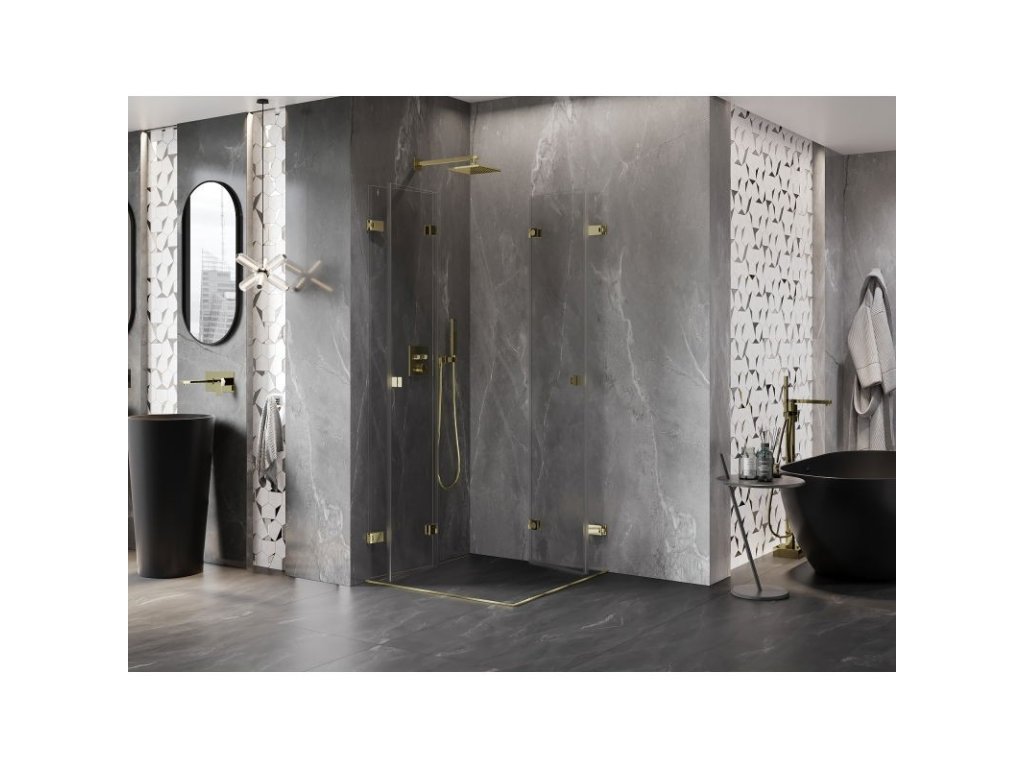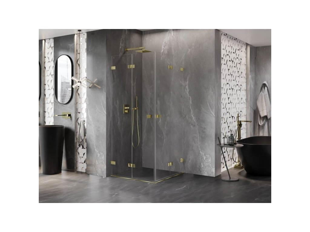 MEXEN/S - Lunar-F Duo sprchový kout skládací dveře 80 x 80, transparent, zlato 836-080L-080P-50-00