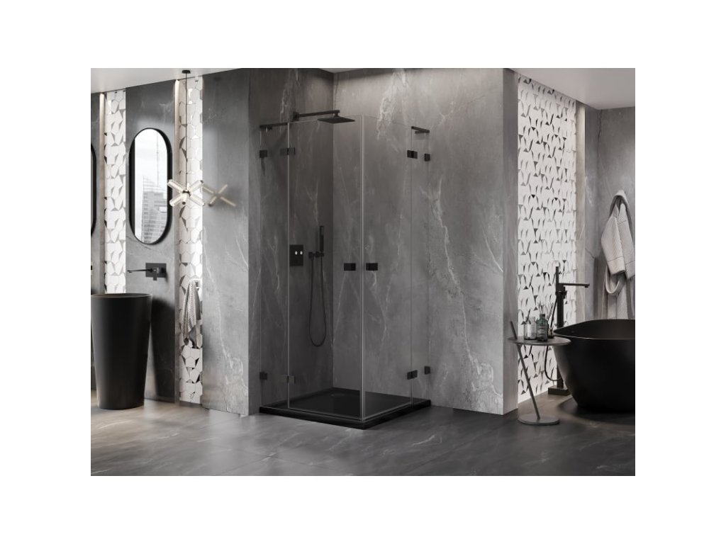 Specifikace produktu: Rozměr: 120x120 cm Výška: 200 cm Strana montáže: Univerzální Vchod: Dveře s otočnými panty Barva skla: Průhledná Povrchová úprava: Černá Profil: Hliník Stabilizátor ve tvaru L: Nerezová ocel Typ skla: Tvrzené Tloušťka skla: 8 mm Povrchová úprava pro snadné čištění Možnost nastavení šířky Dva montážní systémy: - S profilem, který umožňuje vyrovnání nerovností stěny - Bez profilu pro dokonale rovné stěny Možnost montáže na sprchovou vaničku nebo dlaždice Mechanismus pro zvedání a spouštění dveří Mosazné svorky a panty v jedné rovině se skleněnou tabulí Magnetický proužek a elastomerové těsnění pro odvod vody Hliníkový práh těsnění dveříDoplňkové parametry