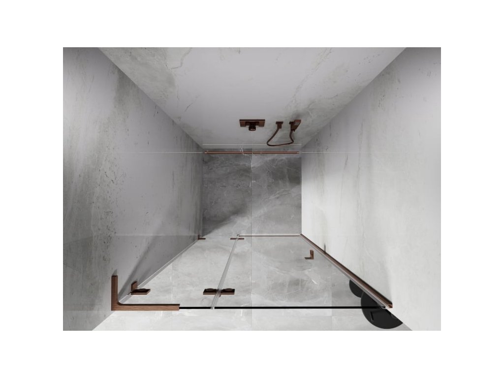 Specifikace produktu: Rozměr: 105x200 cm Strana montáže: Levá Vchod: Otevíravý Barva skla: Průhledná Povrchová úprava: Kartáčovaná měď Profil: Hliník Stabilizátor ve tvaru L: Nerezová ocel Typ skla: Tvrzené Tloušťka skla: 8 mm Povrchová úprava pro snadné čištění Možnost nastavení šířky Dva montážní systémy: - S profilem, který umožňuje vyrovnání nerovností stěny - Bez profilu pro dokonale rovné stěny Možnost montáže na sprchovou vaničku nebo dlaždice Mechanismus pro zvedání a spouštění dveří Mosazné svorky a panty v jedné rovině se skleněnou tabulí Magnetický proužek a elastomerové těsnění pro odvod vody Hliníkový práh těsnění dveříDoplňkové parametry