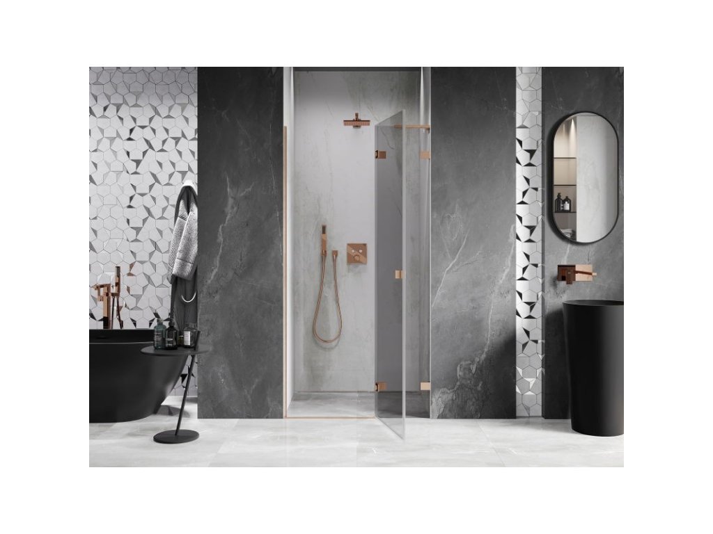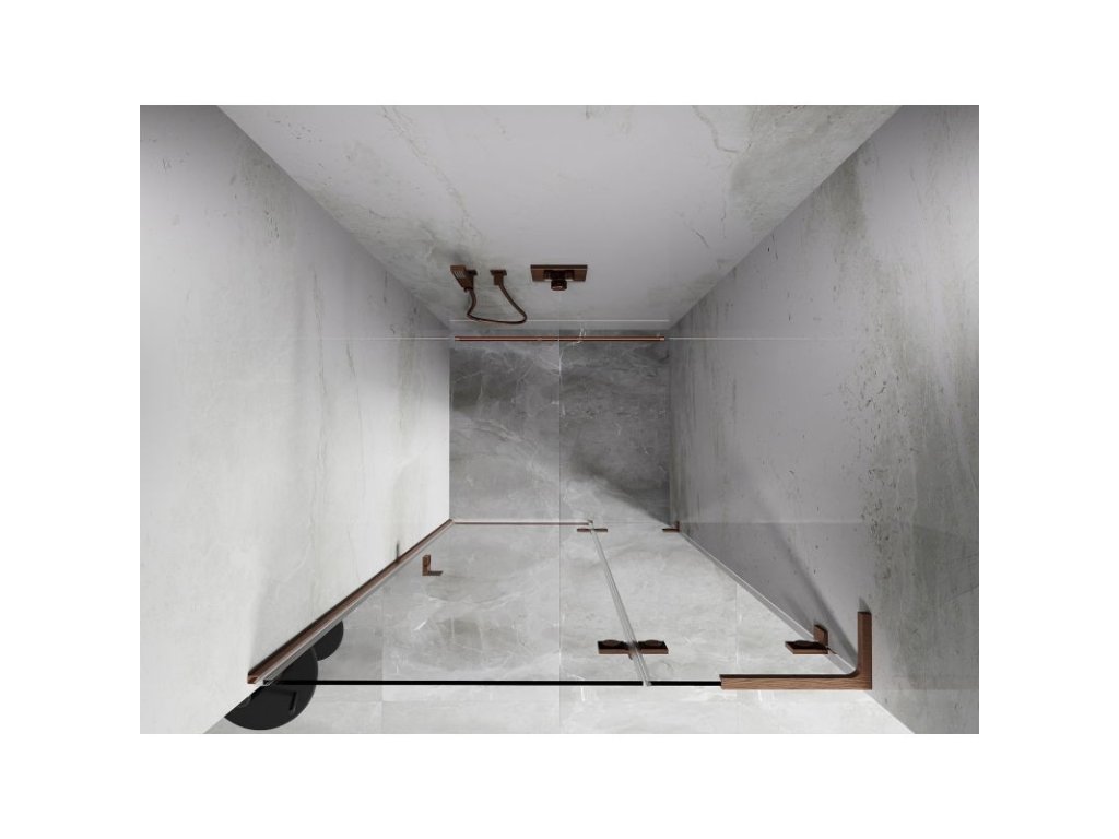 Specifikace produktu: Rozměr: 105x200 cm Strana montáže: Pravá Vchod: Otevíravý Barva skla: Průhledná Povrchová úprava: Kartáčovaná měď Profil: Hliník Stabilizátor ve tvaru L: Nerezová ocel Typ skla: Tvrzené Tloušťka skla: 8 mm Povrchová úprava pro snadné čištění Možnost nastavení šířky Dva montážní systémy: - S profilem, který umožňuje vyrovnání nerovností stěny - Bez profilu pro dokonale rovné stěny Možnost montáže na sprchovou vaničku nebo dlaždice Mechanismus pro zvedání a spouštění dveří Mosazné svorky a panty v jedné rovině se skleněnou tabulí Magnetický proužek a elastomerové těsnění pro odvod vody Hliníkový práh těsnění dveříDoplňkové parametry