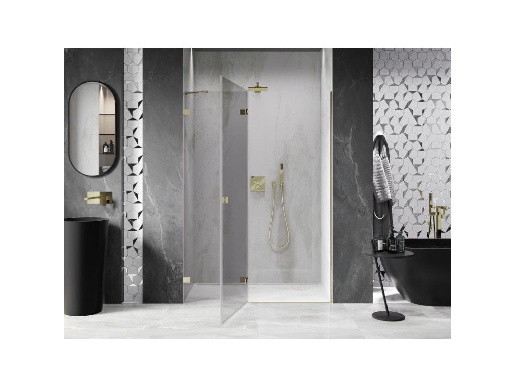 MEXEN/S - Lunar sprchové dveře křídlové levé 135, transparent, zlatá 834-135-000-50-00-L