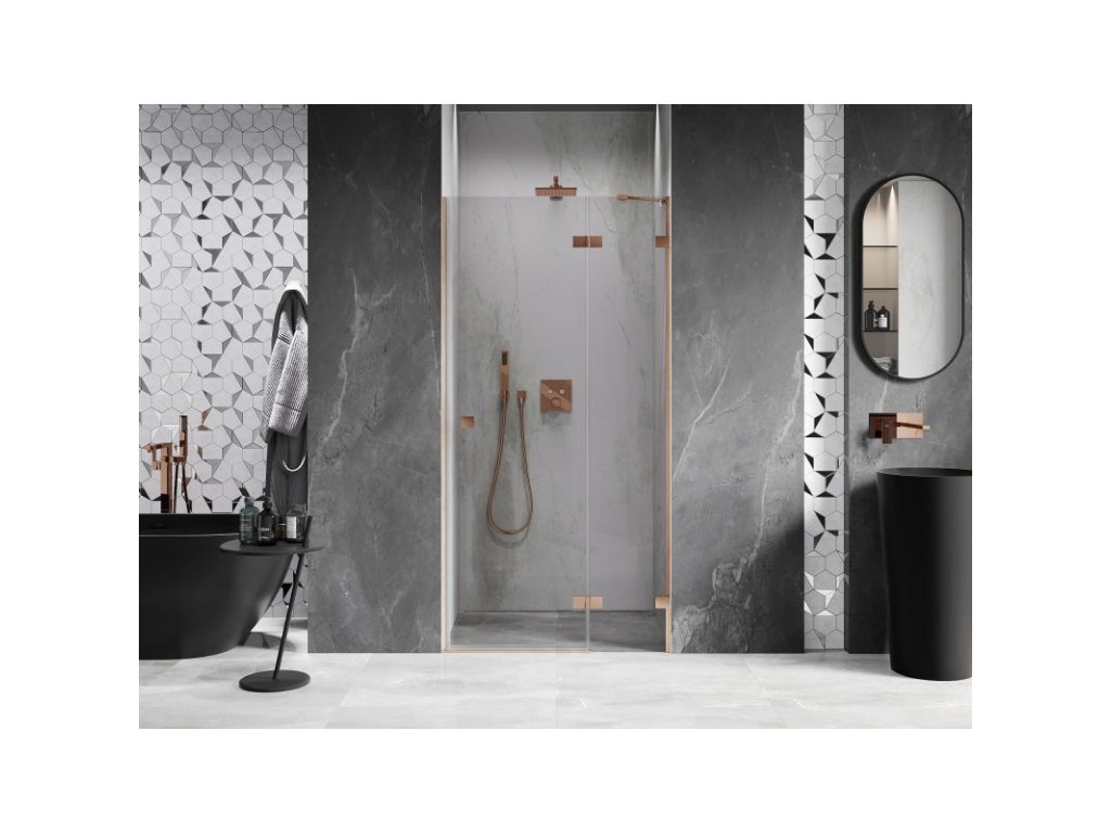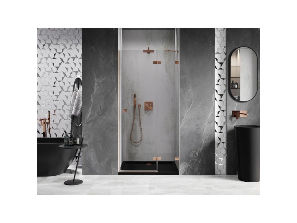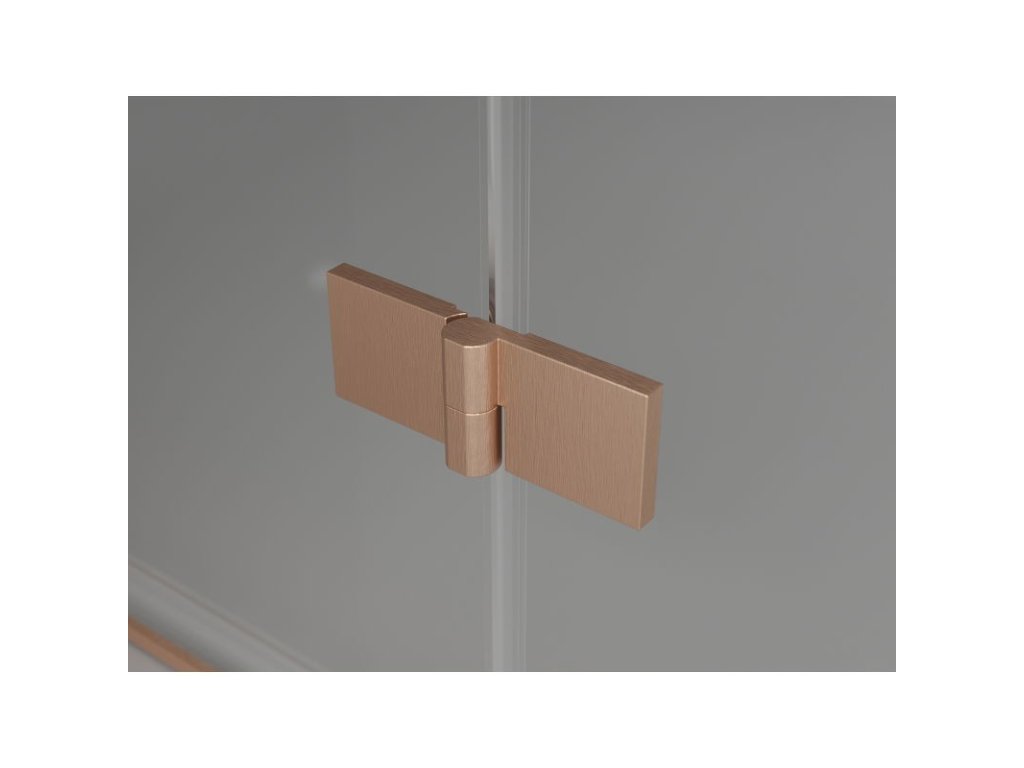 Specifikace produktu: Rozměr: 110x200 cm Strana montáže: Pravá Vchod: Otevíravý Barva skla: Průhledná Povrchová úprava: Kartáčovaná měď Profil: Hliník Nosná konstrukce: Nerezová ocel Typ skla: Tvrzené Tloušťka skla: 8 mm Povrchová úprava pro snadné čištění Nastavitelná šířka Dva montážní systémy: - S profilem, který umožňuje vyrovnání nerovností stěny - Bez profilu pro dokonale rovné stěny Možnost montáže na sprchovou vaničku nebo obklady Mechanismus pro zvedání a spouštění dveří Mosazné svorky a panty v jedné rovině se sklem Magnetický proužek a elastomerové těsnění pro odvod vody Hliníkový práh pro těsnění dveříDoplňkové parametry