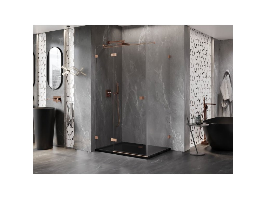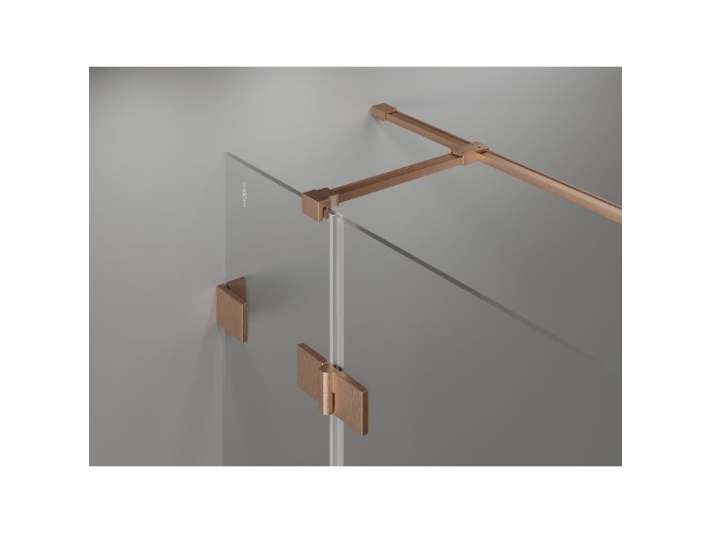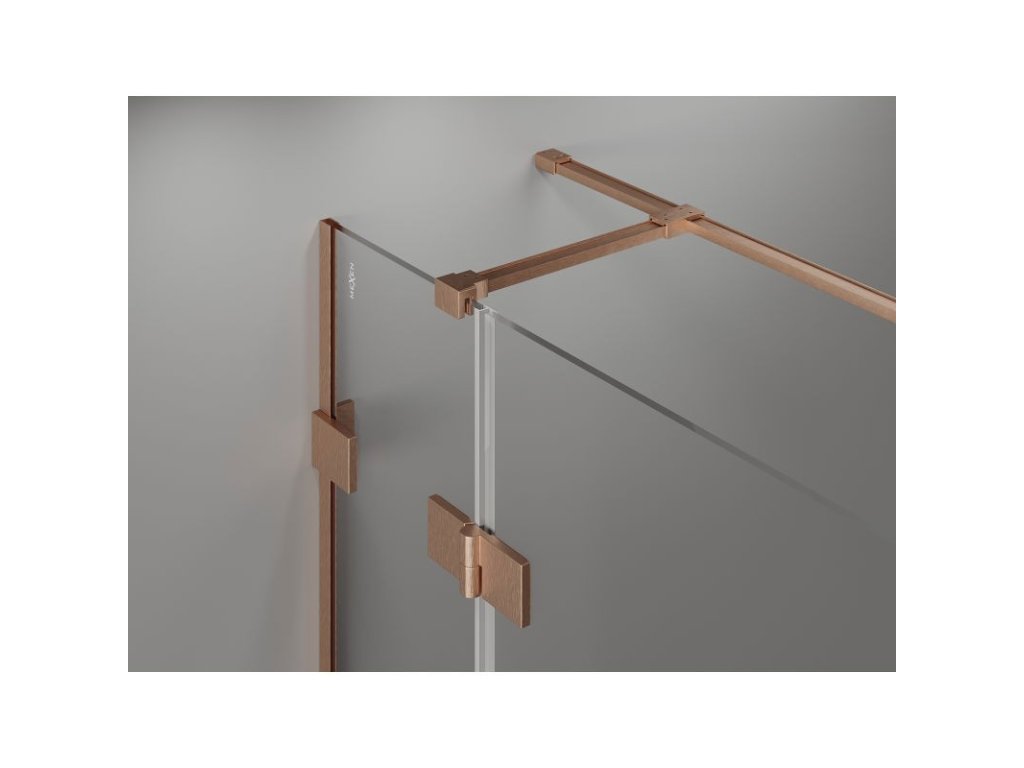 Specifikace produktu: Rozměr: 90x70 cm (levé dveře 90 cm, stěna 70 cm) Výška: 200 cm Strana montáže: Levá Vchod: Dveře s výklopnými křídly Barva skla: Průhledná Povrchová úprava: Kartáčovaná měď Profil: Hliník Konzola: Nerezová ocel Max. délka konzoly: 150 cm Konzolu lze zkrátit na míru Typ skla: Tvrzené Tloušťka skla: 8 mm Povrchová úprava pro snadné čištění Nastavitelná šířka Dva montážní systémy: - S profilem, který umožňuje vyrovnání nerovností stěn - Bez profilu pro dokonale rovné stěny Možnost montáže na sprchovou vaničku nebo obklady Mechanismus pro zvedání a spouštění dveří Mosazné svorky a panty v jedné rovině se sklem Magnetický proužek a elastomerové těsnění pro odvod vody Hliníkový práh těsnění dveříDoplňkové parametry