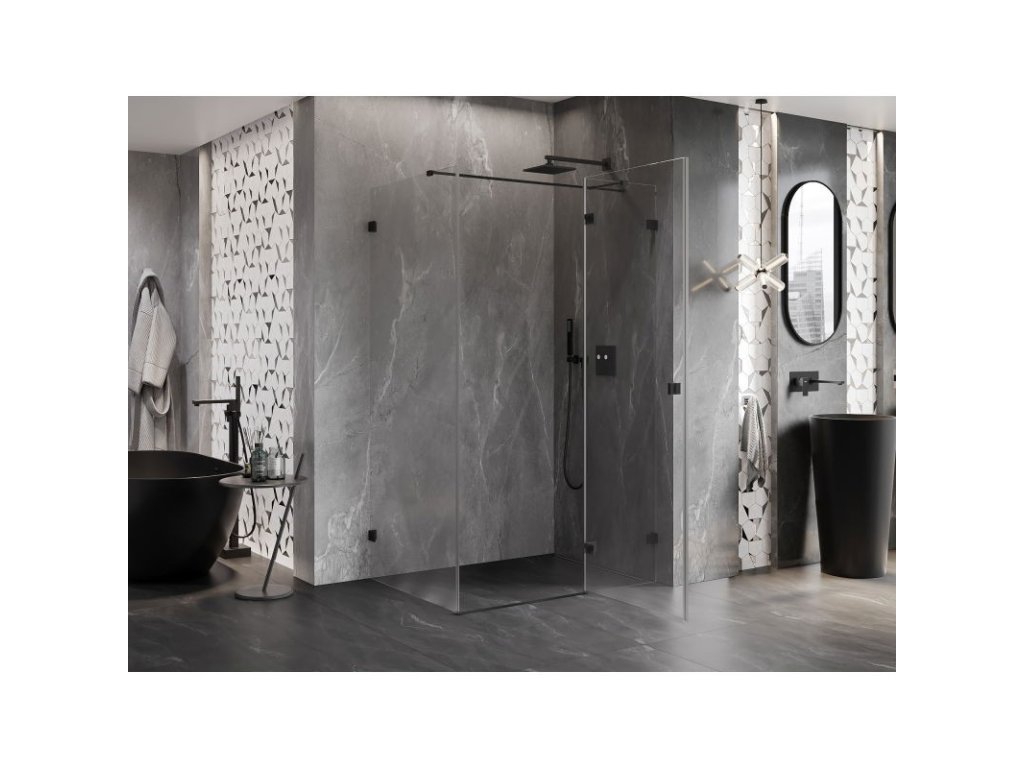 Specifikace produktu: Rozměr: 85x80 cm (pravé dveře 85 cm, stěna 80 cm) Výška: 200 cm Strana montáže: Pravá Vchod: Dveře s výklopnými křídly Barva skla: Průhledná Povrchová úprava: Černá Profil: Hliník Konzola: Nerezová ocel Max. délka konzoly: 150 cm Možnost zkrácení konzoly Typ skla: Tvrzené Tloušťka skla: 8 mm Povrchová úprava pro snadné čištění Možnost nastavení šířky Dva montážní systémy: - S profilem, který umožňuje vyrovnání nerovností stěny - Bez profilu v případě dokonale rovných stěn Možnost montáže na sprchovou vaničku nebo obklady Mechanismus pro zvedání a spouštění dveří Mosazné svorky a panty v jedné rovině se skleněnou tabulí Magnetický proužek a elastomerové těsnění pro odvod vody Hliníkový práh těsnění dveříDoplňkové parametry