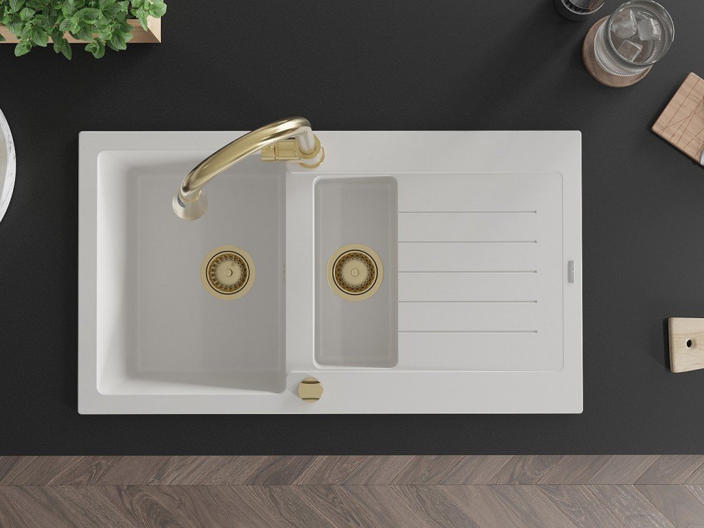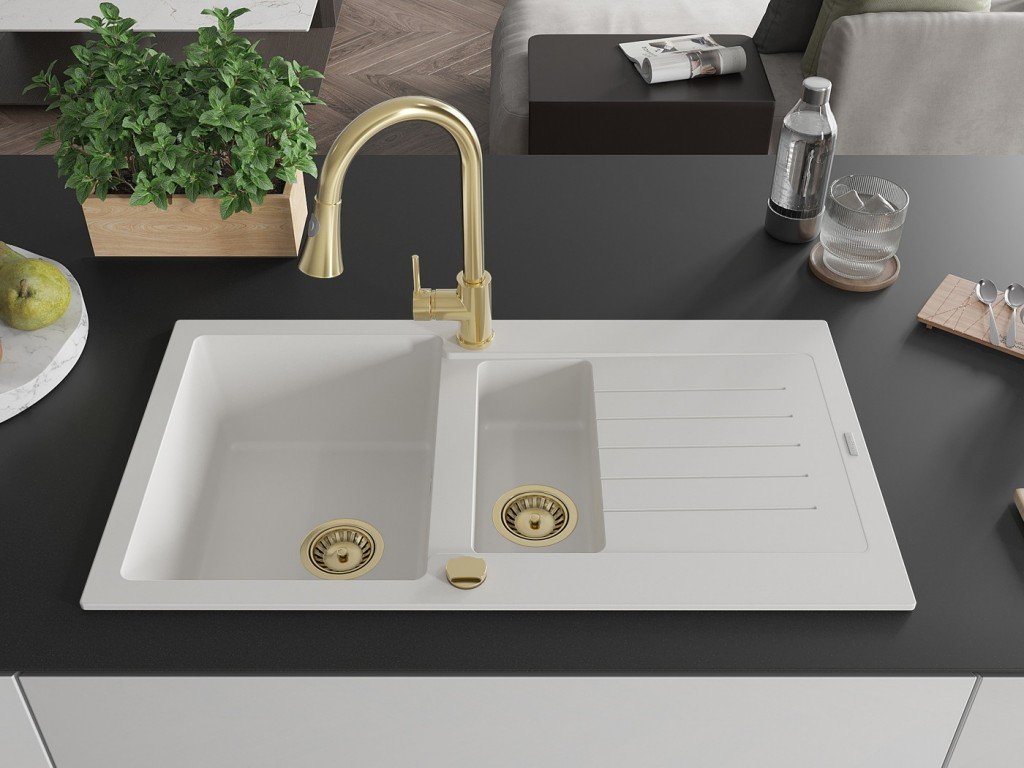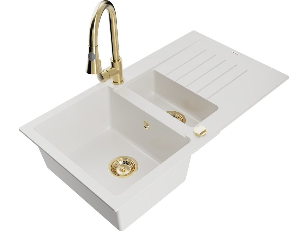 MEXEN/S - Matias granitový dřez 1.5 s odkapávačem včetně baterie Elia, bílá 6502-20-670101-50