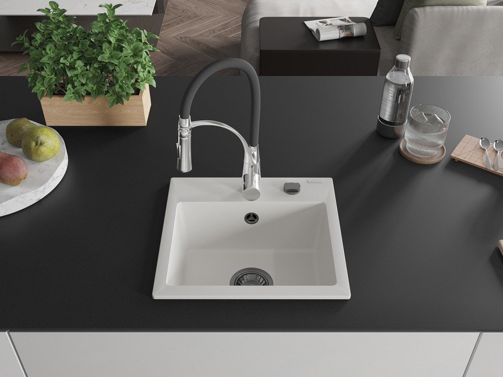 MEXEN/S - Milo granitový dřez 1-miska včetně baterie Aster, bílá 6505-20-73450-07-B
