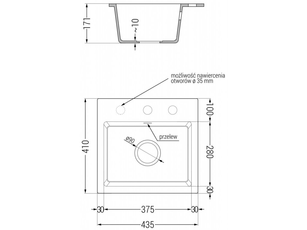 Jeden dodatečný vyfrézovaný otvor pro samoděrování ø35