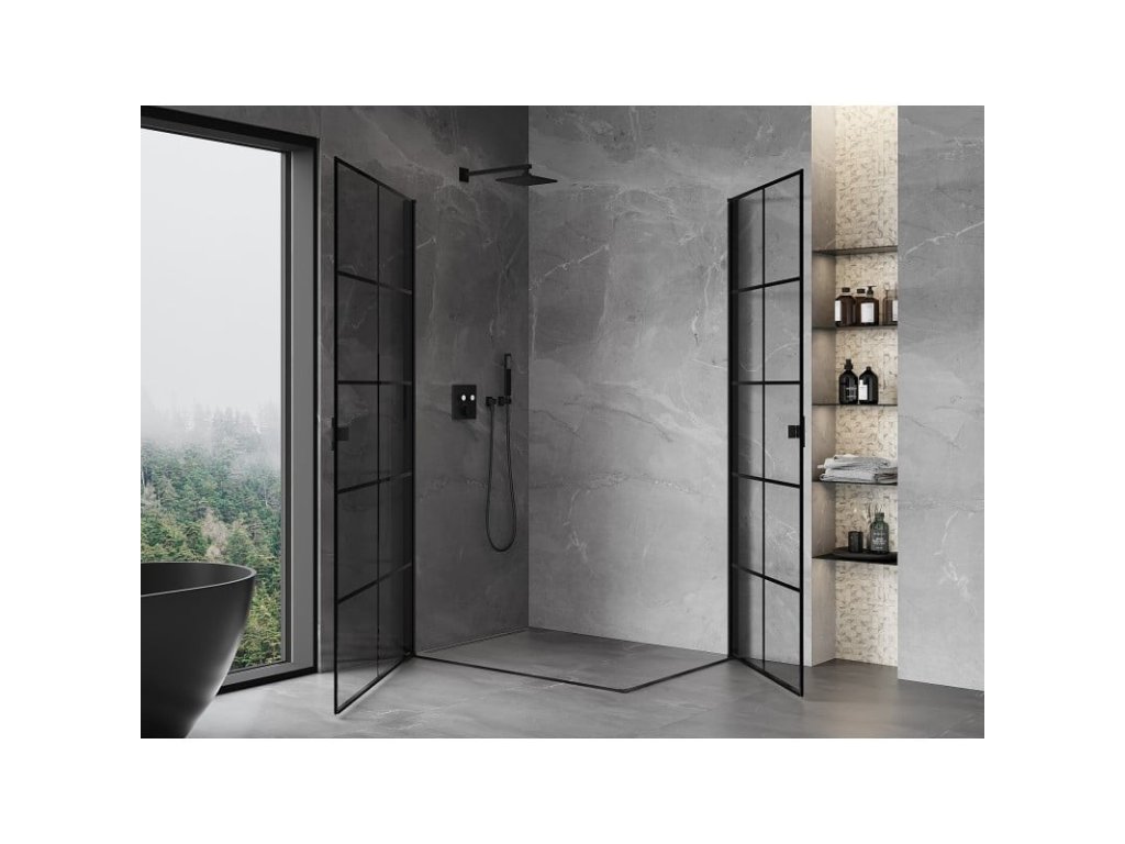 Specifikace produktu: Rozměr: 80x100 cm (levé dveře 80 cm, pravé dveře 100 cm) Výška: 200 cm Strana montáže: Univerzální Vchod: Dveře s výklopnými křídly Barva skla: Černá mřížka Povrchová úprava: Černá Profil: Hliník Typ skla: Tvrzené Tloušťka skla: 6 mm Povrchová úprava pro snadné čištění Nastavitelná šířka Možnost montáže na sprchovou vaničku nebo dlaždice Mechanismus zvedání a spouštění dveří Magnetický proužek a elastomerové těsnění pro odtok vody Hliníkový práh těsnění dveříDoplňkové parametry