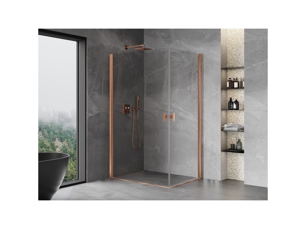 Specifikace produktu: Rozměr: 85x70 cm Výška: 200 cm Strana montáže: Univerzální Vchod: Dveře s výklopnými křídly Barva skla: Průhledná Povrchová úprava: Kartáčovaná měď Profil: Hliník Typ skla: Tvrzené Tloušťka skla: 6 mm Povrchová úprava pro snadné čištění Nastavitelná šířka Možnost montáže na sprchovou vaničku nebo dlaždice Mechanismus zvedání a spouštění dveří Magnetický proužek a elastomerové těsnění pro odtok vody Hliníkový práh těsnění dveříDoplňkové parametry