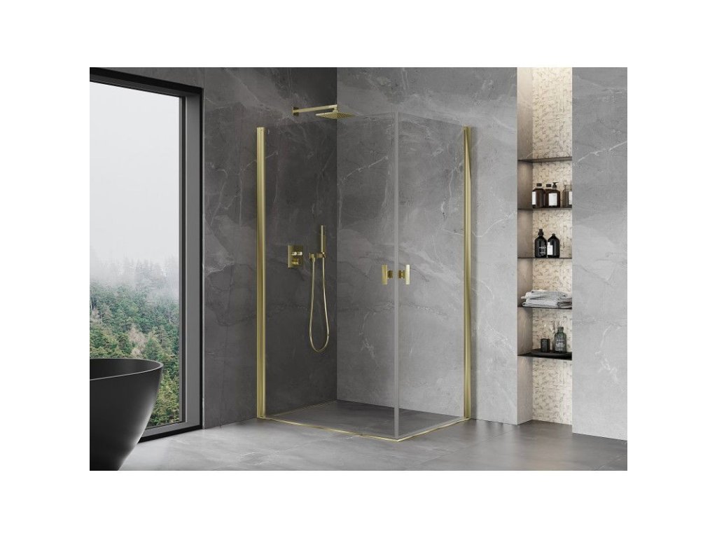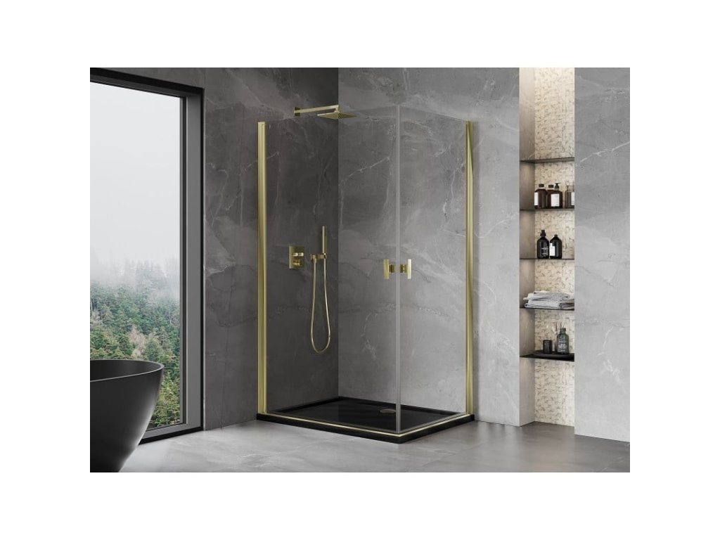 Specifikace produktu: Rozměr: 85x70 cm Výška: 200 cm Strana montáže: Univerzální Vchod: Dveře s výklopnými křídly Barva skla: Průhledná Povrchová úprava: Zlatá Profil: Hliník Typ skla: Tvrzené Tloušťka skla: 6 mm Povrchová úprava pro snadné čištění Nastavitelná šířka Možnost montáže na sprchovou vaničku nebo dlaždice Mechanismus zvedání a spouštění dveří Magnetický proužek a elastomerové těsnění pro odtok vody Hliníkový práh těsnění dveříDoplňkové parametry