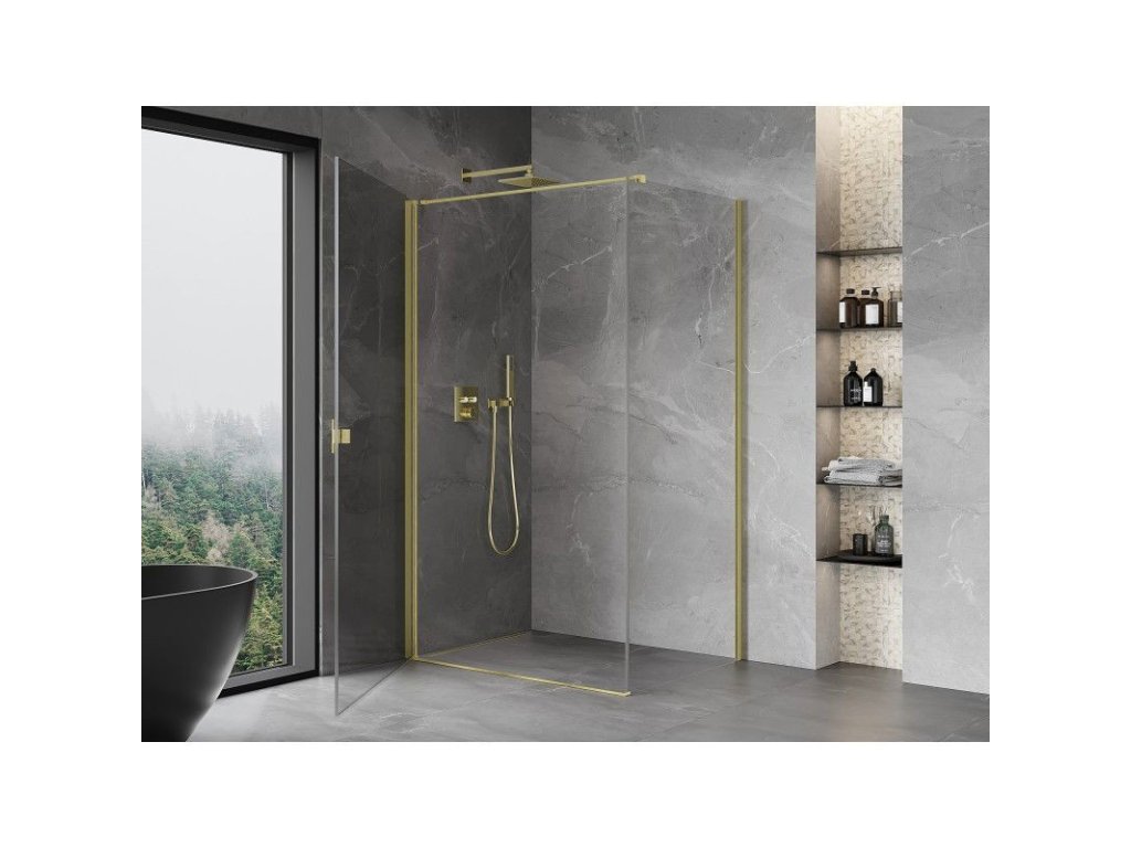 Specifikace produktu: Rozměr: 80x100 cm (dveře 80 cm, stěna 100 cm) Výška: 200 cm Strana montáže: Univerzální Vchod: Dveře s otočnými panty Barva skla: Průhledná Povrchová úprava: Kartáčované zlato Profil: Hliník Konzola: Nerezová ocel Max. délka konzoly: 150 cm Konzolu lze řezat Typ skla: Tvrzené Tloušťka skla: 6 mm Povrchová úprava pro snadné čištění Nastavitelná šířka Možnost montáže na sprchovou vaničku nebo dlaždice Mechanismus zvedání a spouštění dveří Magnetický proužek a elastomerové těsnění pro odtok vody Hliníkový práh těsnění dveříDoplňkové parametry