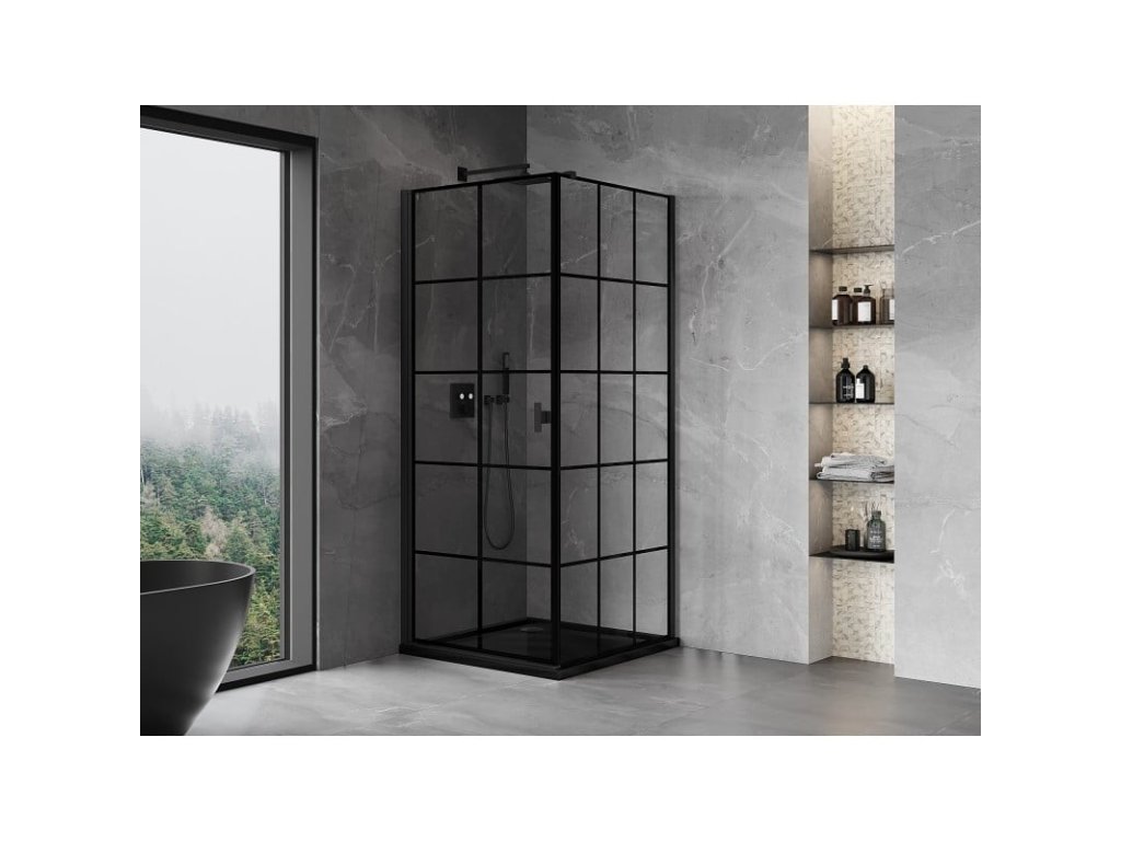 Specifikace produktu: Rozměr: 100x100 cm (levé dveře 100 cm, stěna 100 cm) Výška: 200 cm Strana montáže: Levá Vchod: Dveře s výklopnými křídly Barva skla: Černá mřížka Povrchová úprava: Černá Profil: Hliník Konzola: Nerezová ocel Max. délka konzoly: 150 cm Konzolu lze řezat Typ skla: Tvrzené Tloušťka skla: 6 mm Povrchová úprava pro snadné čištění Nastavitelná šířka Možnost montáže na sprchovou vaničku nebo dlaždice Mechanismus zvedání a spouštění dveří Magnetický proužek a elastomerové těsnění pro odtok vody Hliníkový práh těsnění dveříDoplňkové parametry