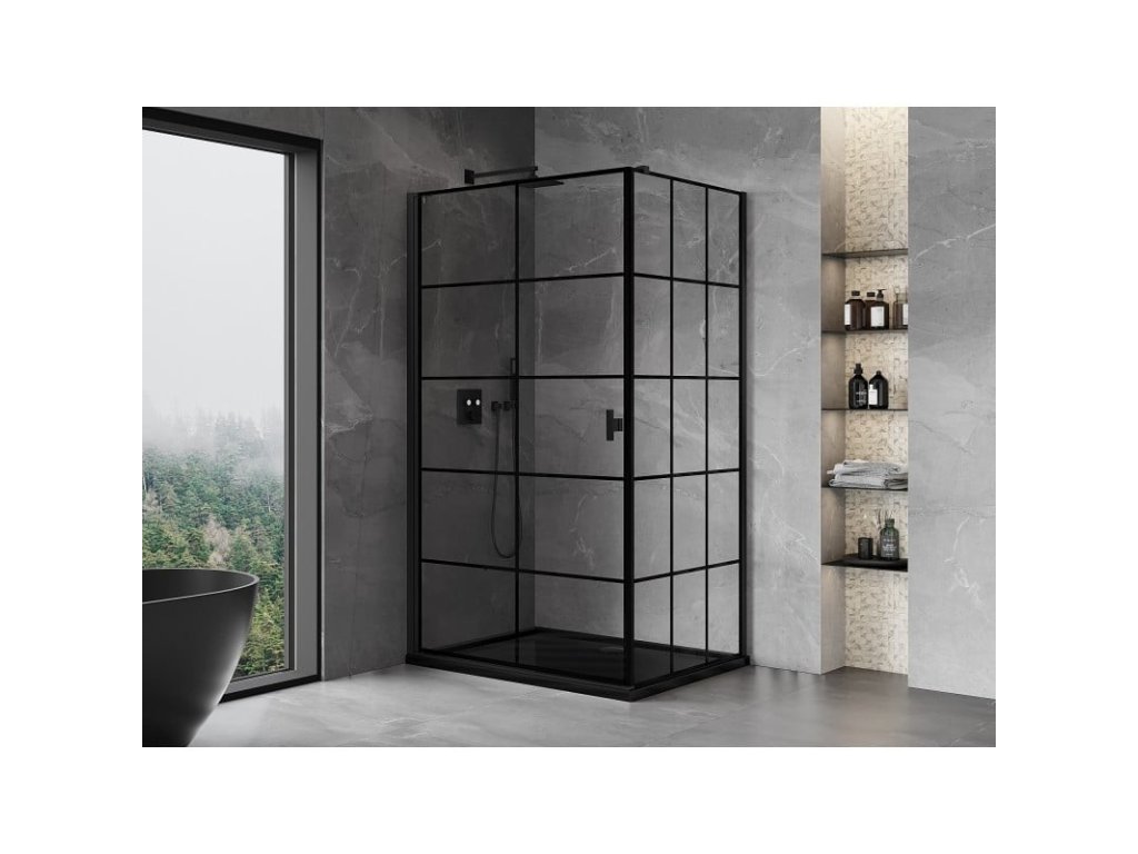 Specifikace produktu: Rozměr: 70x100 cm (levé dveře 70 cm, stěna 100 cm) Výška: 200 cm Strana montáže: Levá Vchod: Dveře s výklopnými křídly Barva skla: Černá mřížka Povrchová úprava: Černá Profil: Hliník Konzola: Nerezová ocel Max. délka konzoly: 150 cm Konzolu lze řezat Typ skla: Tvrzené Tloušťka skla: 6 mm Povrchová úprava pro snadné čištění Nastavitelná šířka Možnost montáže na sprchovou vaničku nebo dlaždice Mechanismus zvedání a spouštění dveří Magnetický proužek a elastomerové těsnění pro odtok vody Hliníkový práh těsnění dveříDoplňkové parametry