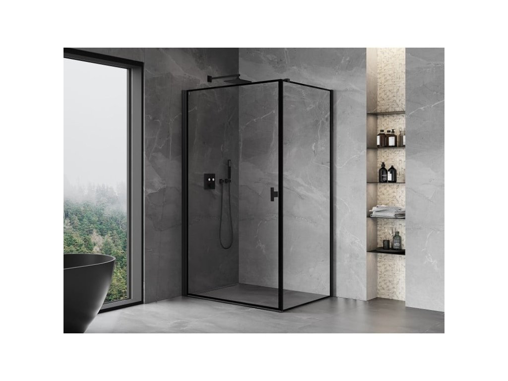 Specifikace produktu: Rozměr: 90x75 cm (levé dveře 90 cm, stěna 75 cm) Výška: 200 cm Strana montáže: Levá Vchod: Dveře s otočnými panty Barva skla: Černý rám Povrchová úprava: Černá Profil: Hliník Konzola: Nerezová ocel Max. délka konzoly: 150 cm Konzolu lze řezat Typ skla: Tvrzené Tloušťka skla: 6 mm Povrchová úprava pro snadné čištění Nastavitelná šířka Možnost montáže na sprchovou vaničku nebo dlaždice Mechanismus zvedání a spouštění dveří Magnetický proužek a elastomerové těsnění pro odtok vody Hliníkový práh těsnění dveříDoplňkové parametry