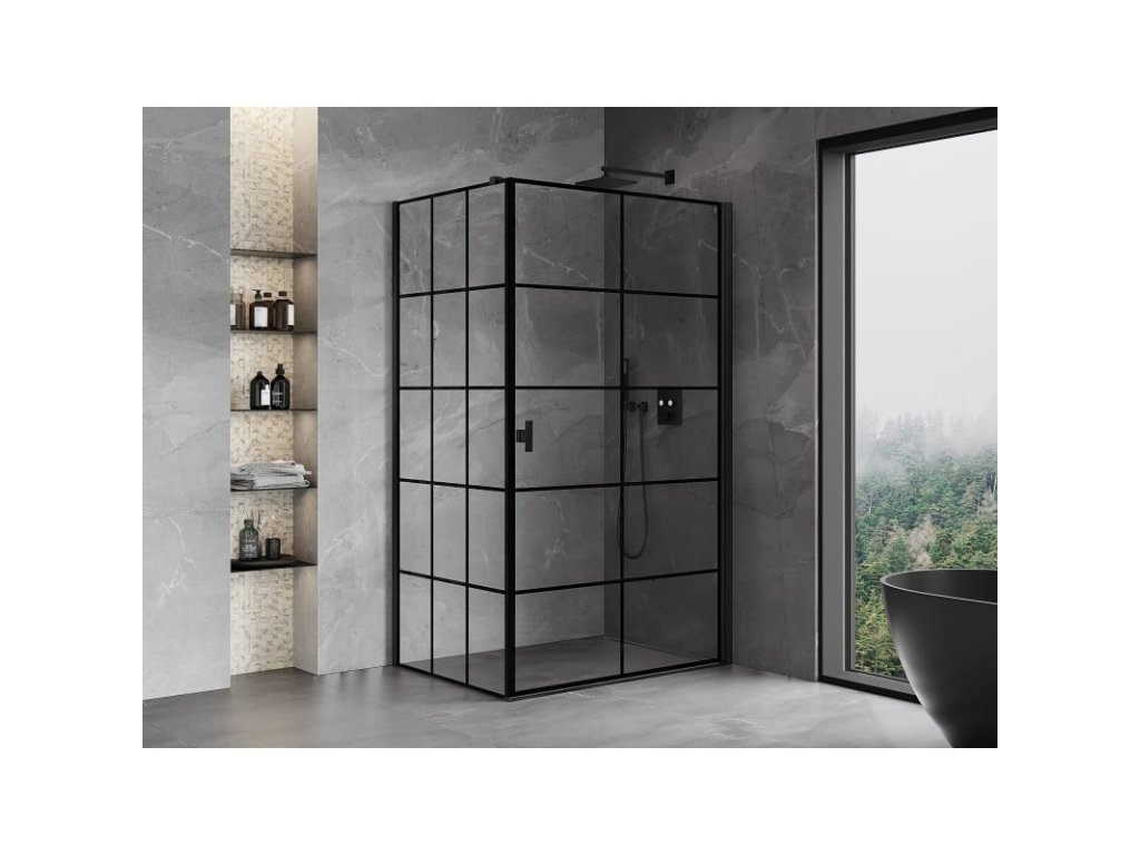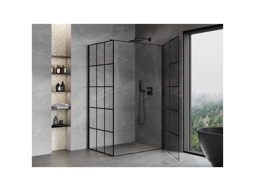 Specifikace produktu: Rozměr: 70x100 cm (pravé dveře 70 cm, stěna 100 cm) Výška: 200 cm Strana montáže: Pravá Vchod: Dveře s otočnými panty Barva skla: Černá mřížka Povrchová úprava: Černá Profil: Hliník Konzola: Nerezová ocel Max. délka konzoly: 150 cm Konzolu lze řezat Typ skla: Tvrzené Tloušťka skla: 6 mm Povrchová úprava pro snadné čištění Nastavitelná šířka Možnost montáže na sprchovou vaničku nebo dlaždice Mechanismus zvedání a spouštění dveří Magnetický proužek a elastomerové těsnění pro odtok vody Hliníkový práh těsnění dveříDoplňkové parametry