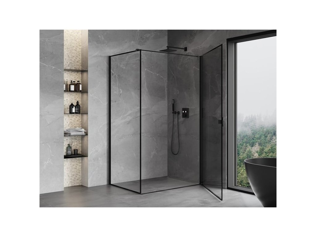 Specifikace produktu: Rozměr: 80x85 cm (pravé dveře 80 cm, stěna 85 cm) Výška: 200 cm Strana montáže: Pravá Vchod: Dveře s otočnými panty Barva skla: Černý rám Povrchová úprava: Černá Profil: Hliník Konzola: Nerezová ocel Max. délka konzoly: 150 cm Konzolu lze řezat Typ skla: Tvrzené Tloušťka skla: 6 mm Povrchová úprava pro snadné čištění Nastavitelná šířka Možnost montáže na sprchovou vaničku nebo dlaždice Mechanismus zvedání a spouštění dveří Magnetický proužek a elastomerové těsnění pro odtok vody Hliníkový práh těsnění dveříDoplňkové parametry